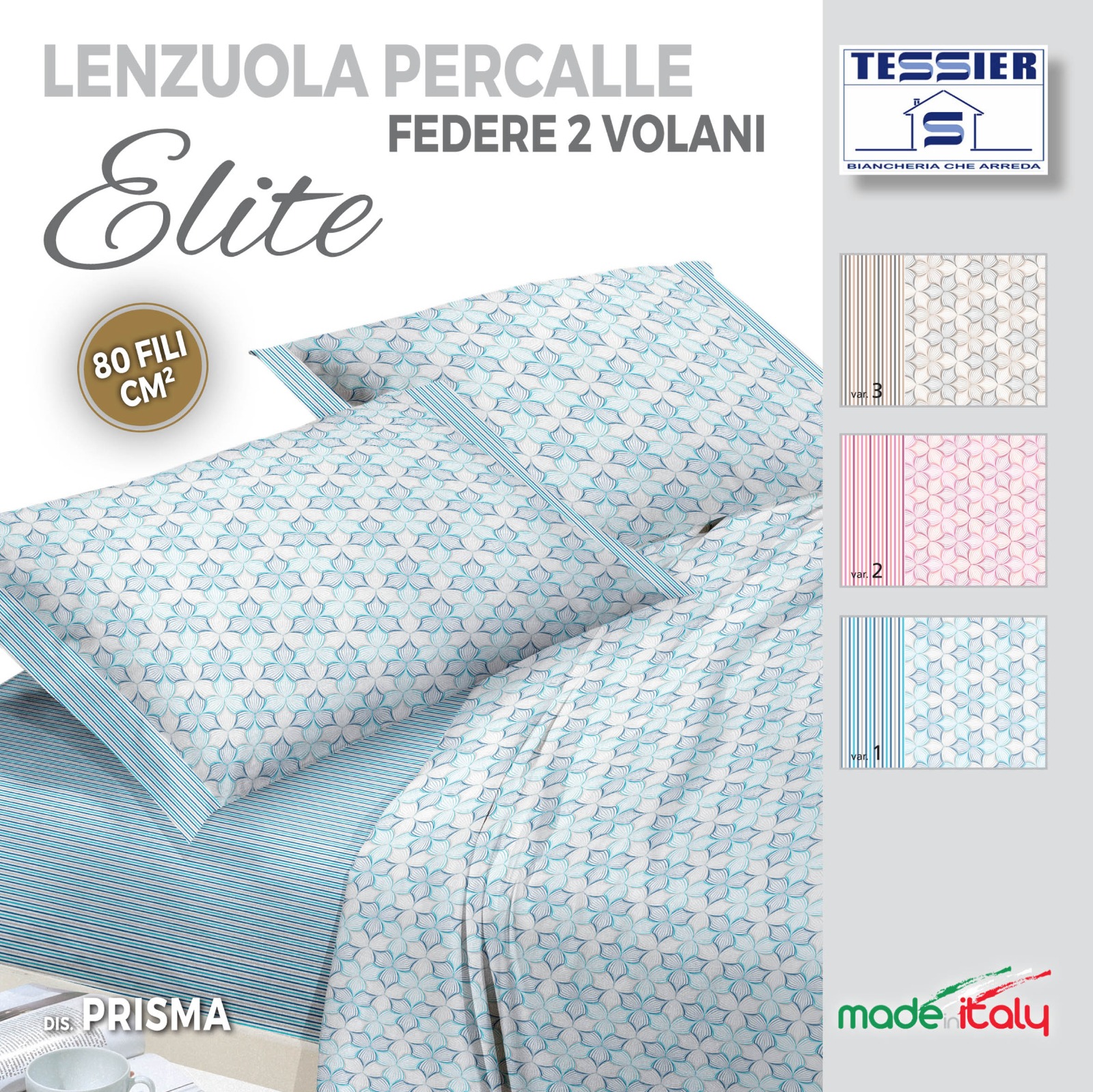Completo letto in Percalle Matrimoniale Dis.Prisma