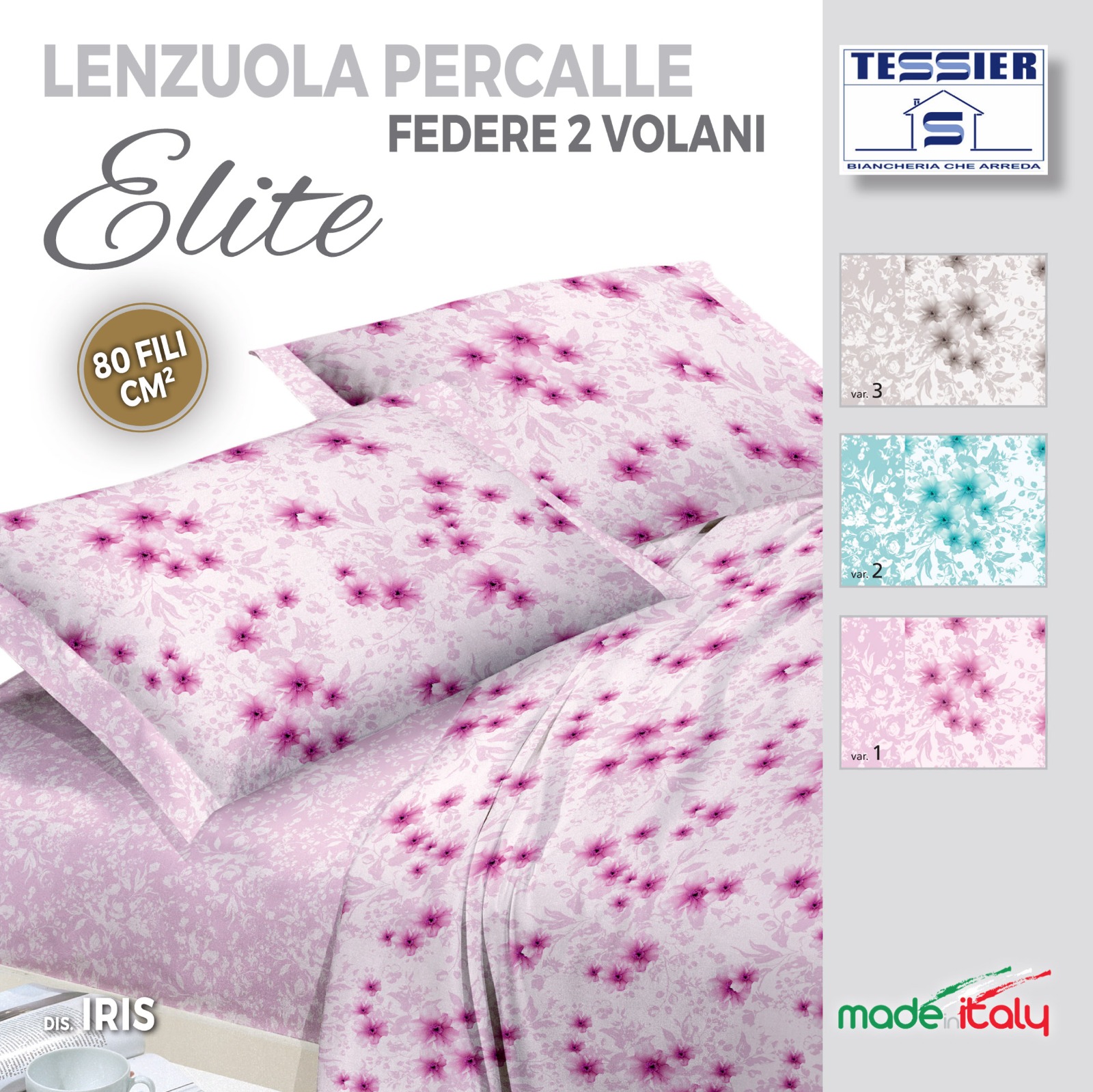 Completo letto in Percalle Matrimoniale dis.Iris