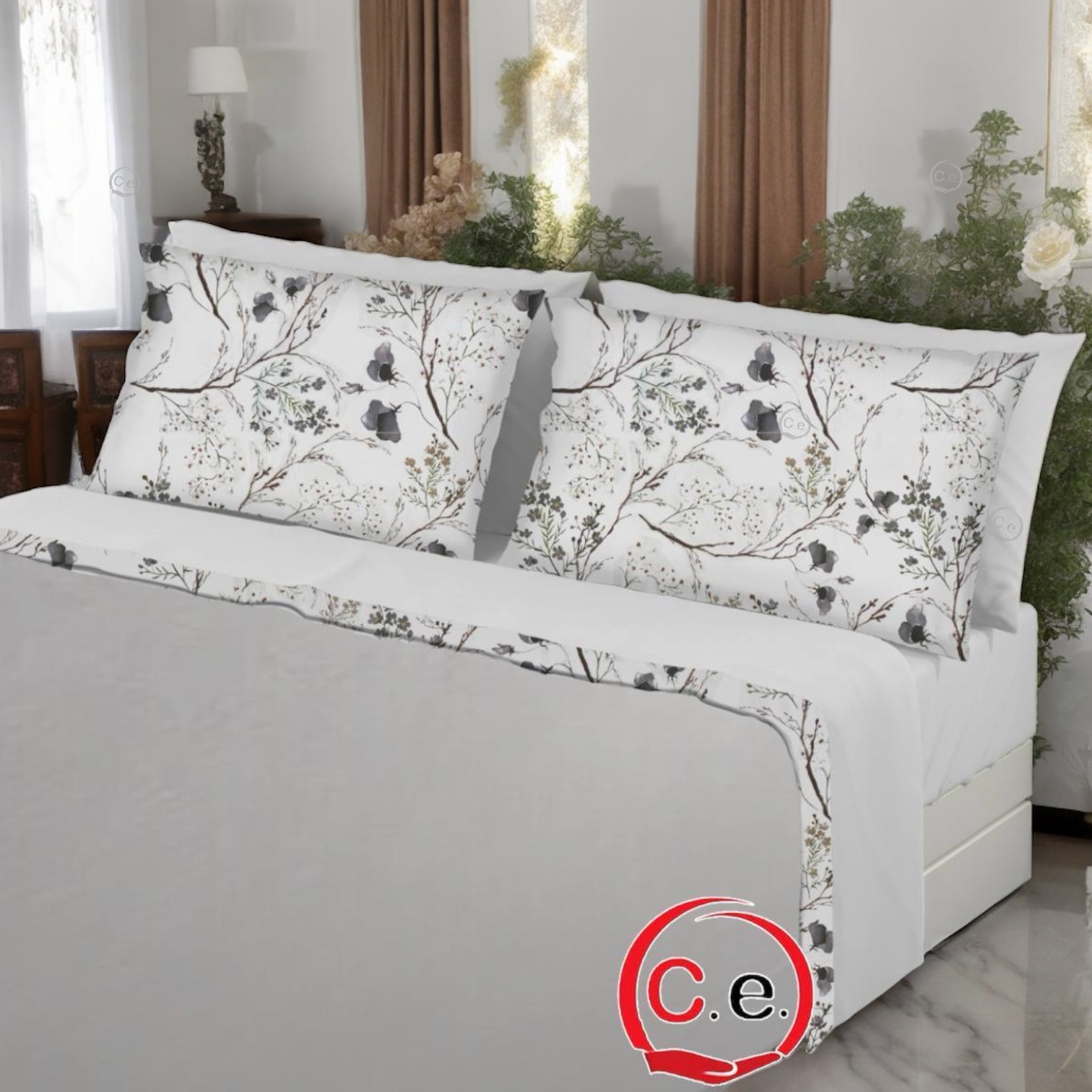 Completo lenzuola Casarredo Ramage matrimoniale stampato in puro cotone