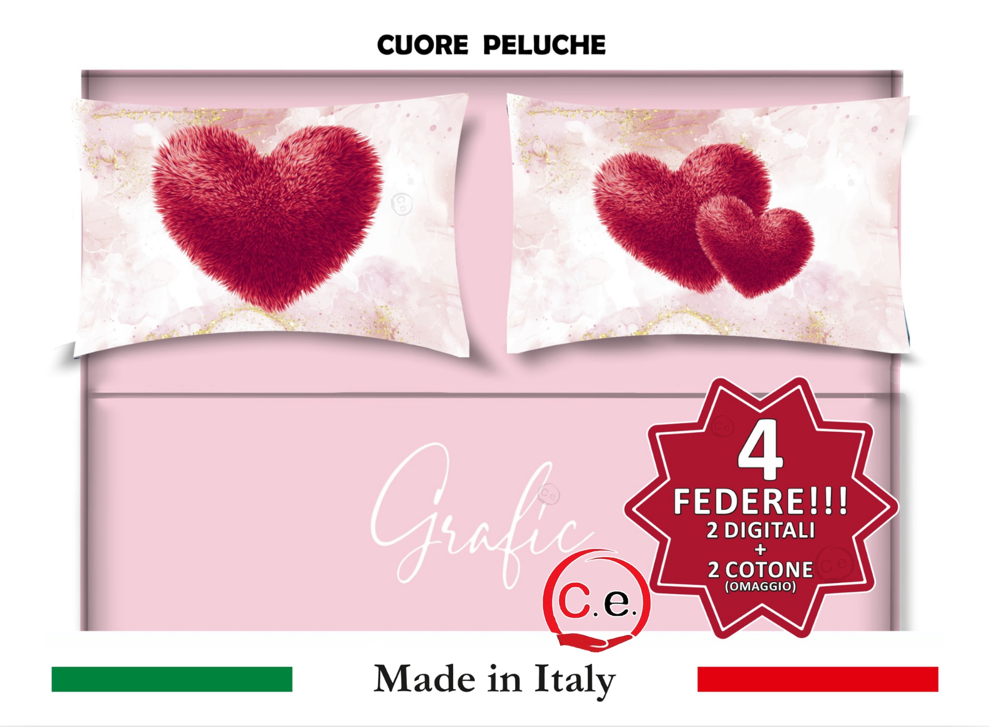 Completo Lenzuola Matrimoniale Disegno Cuore Peluche Grafic