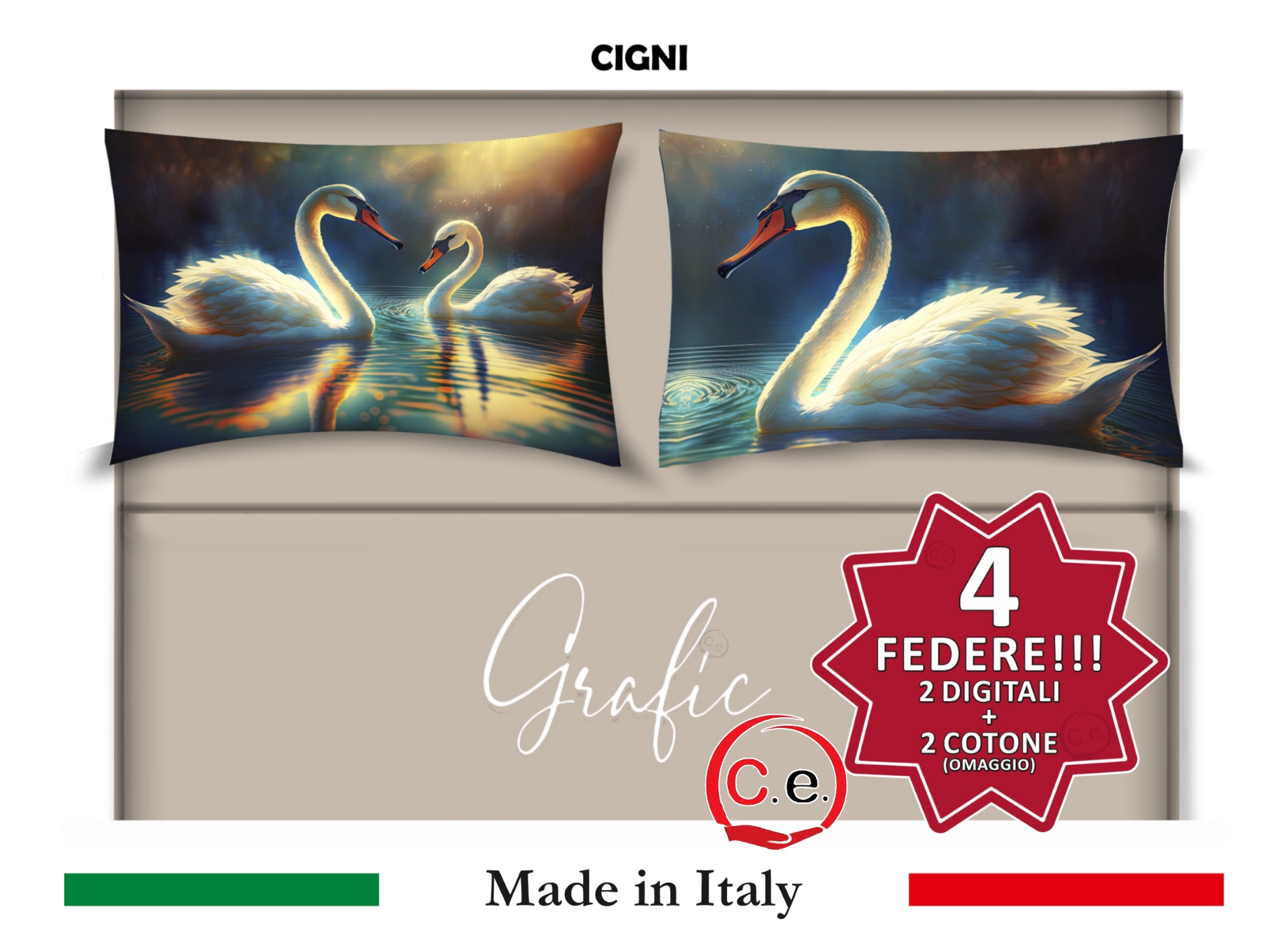 Completo Lenzuola Matrimoniale Disegno Cigni Grafic