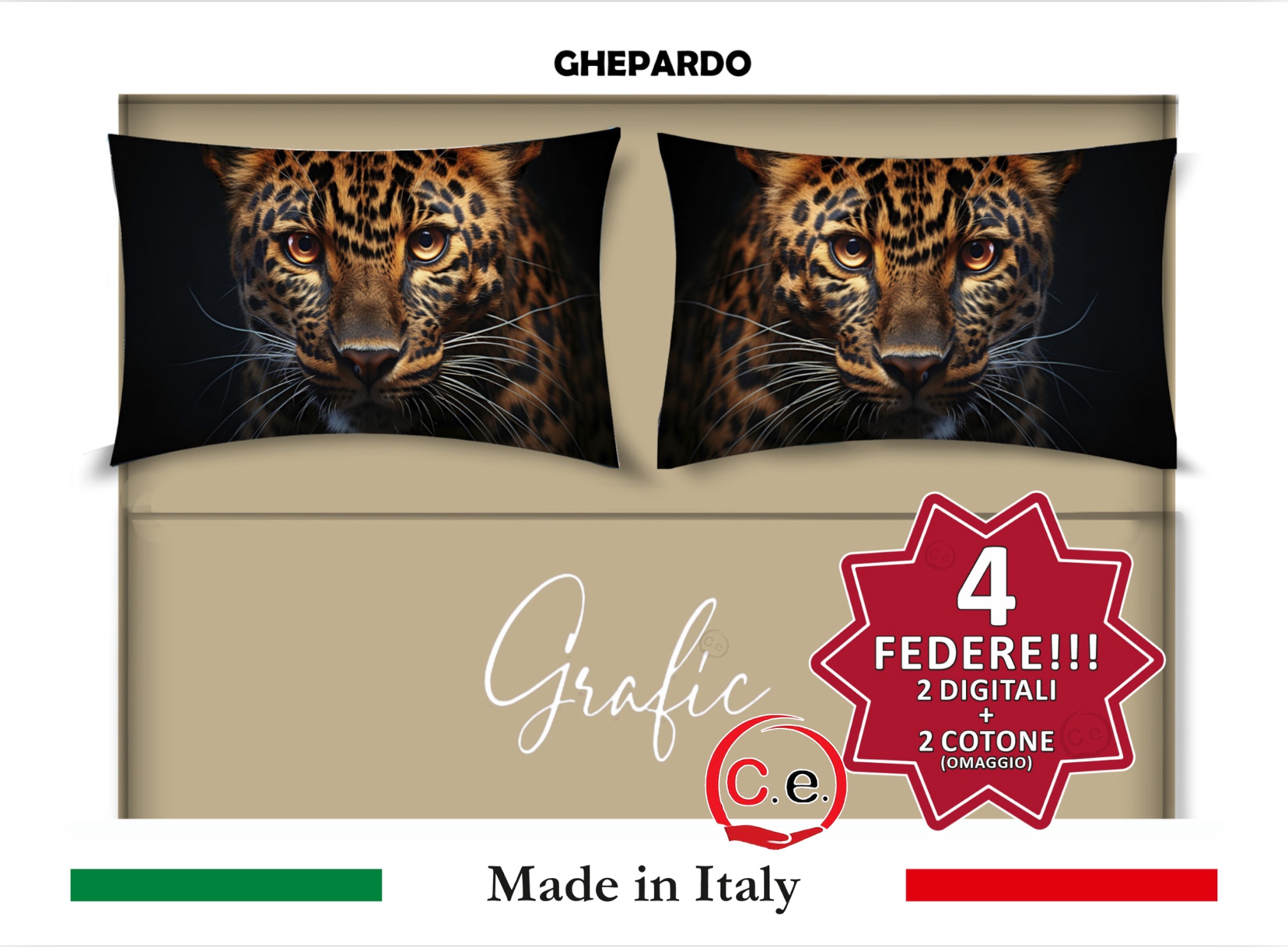 Completo Lenzuola Matrimoniale Disegno Ghepardo Grafic