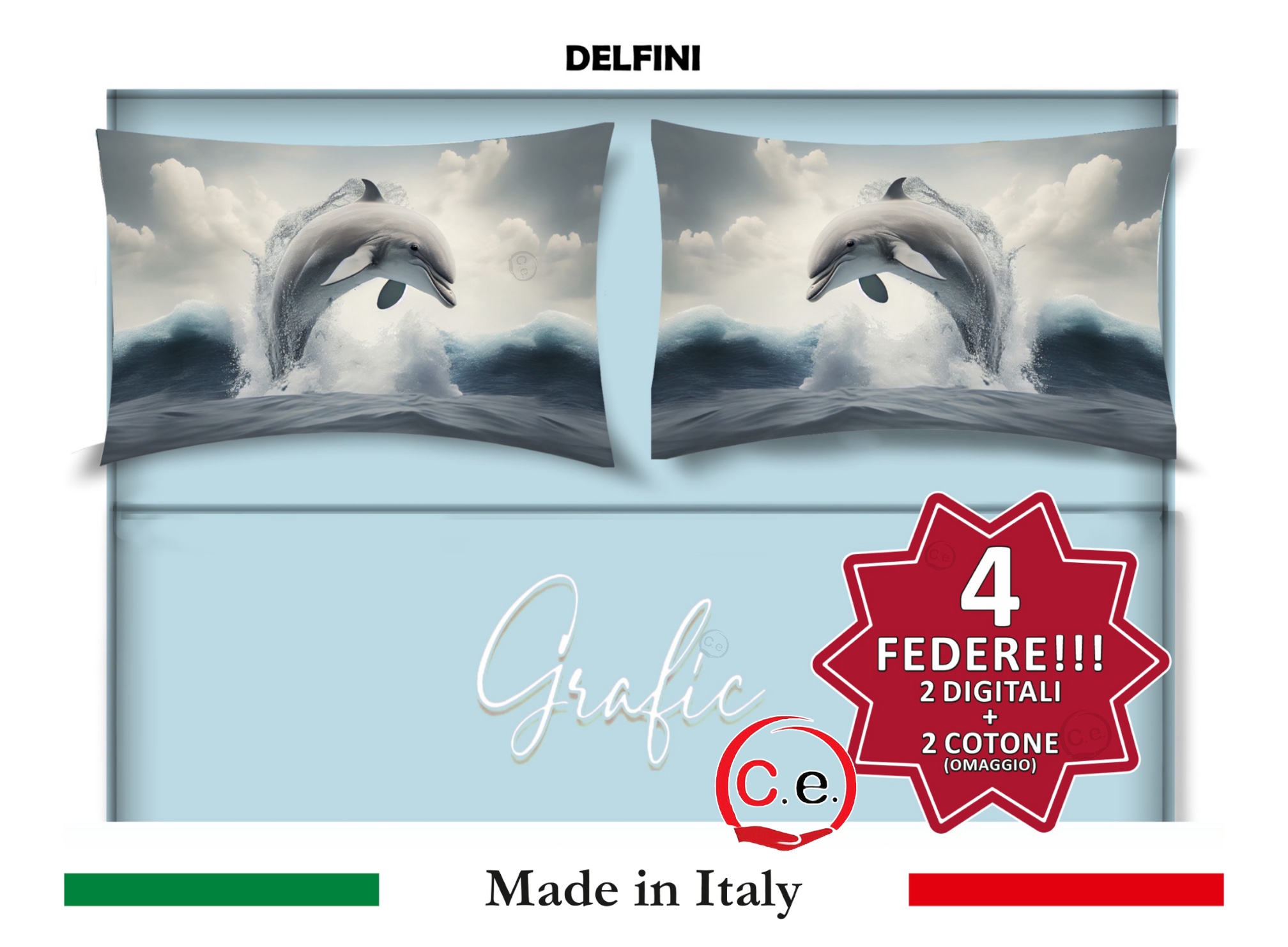 Completo Lenzuola Matrimoniale Disegno Delfini Grafic