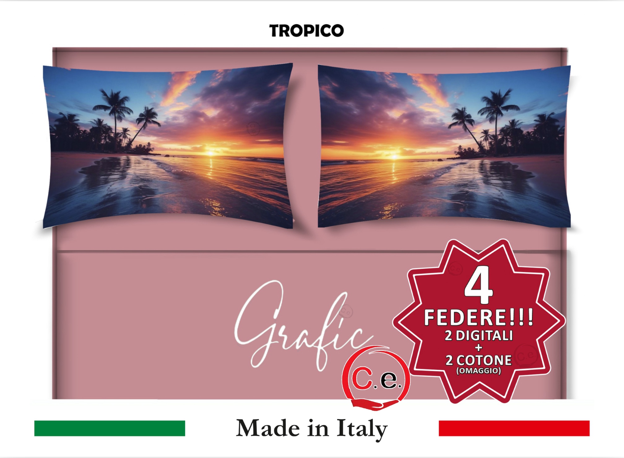 Completo Lenzuola Matrimoniale Disegno Tropico Grafic