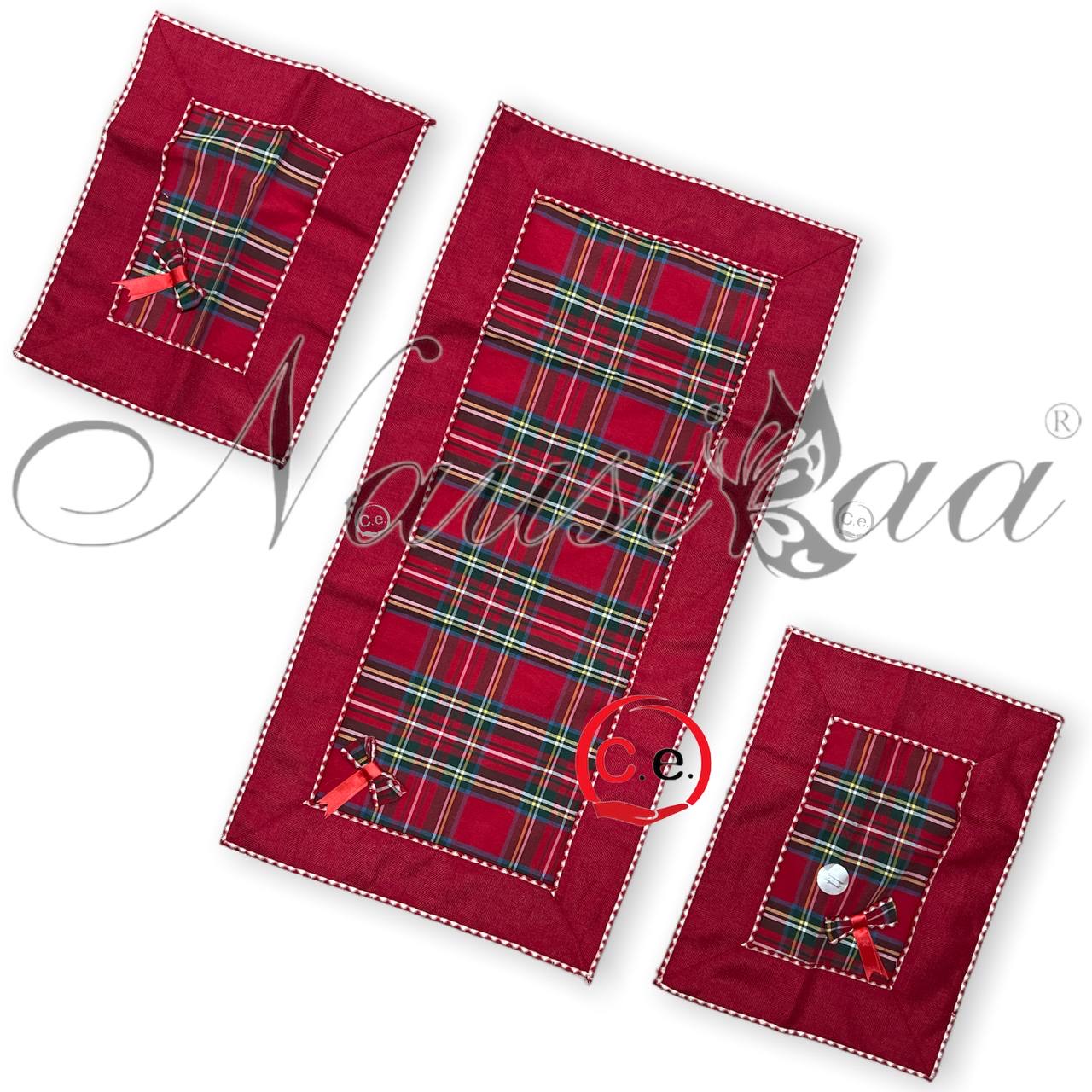 Tris centri Nicolle in puro lino con pizzo in macramè con Swarovski