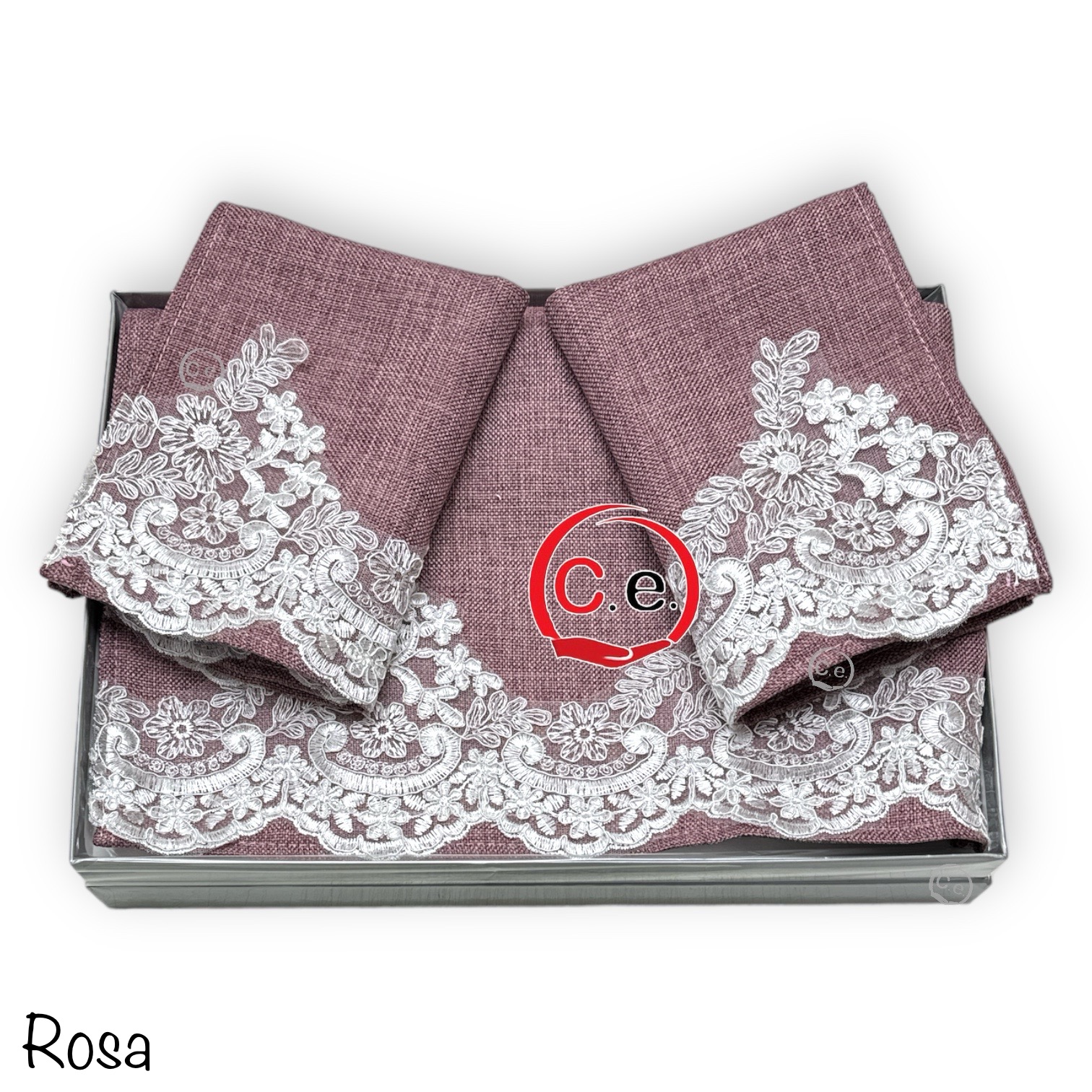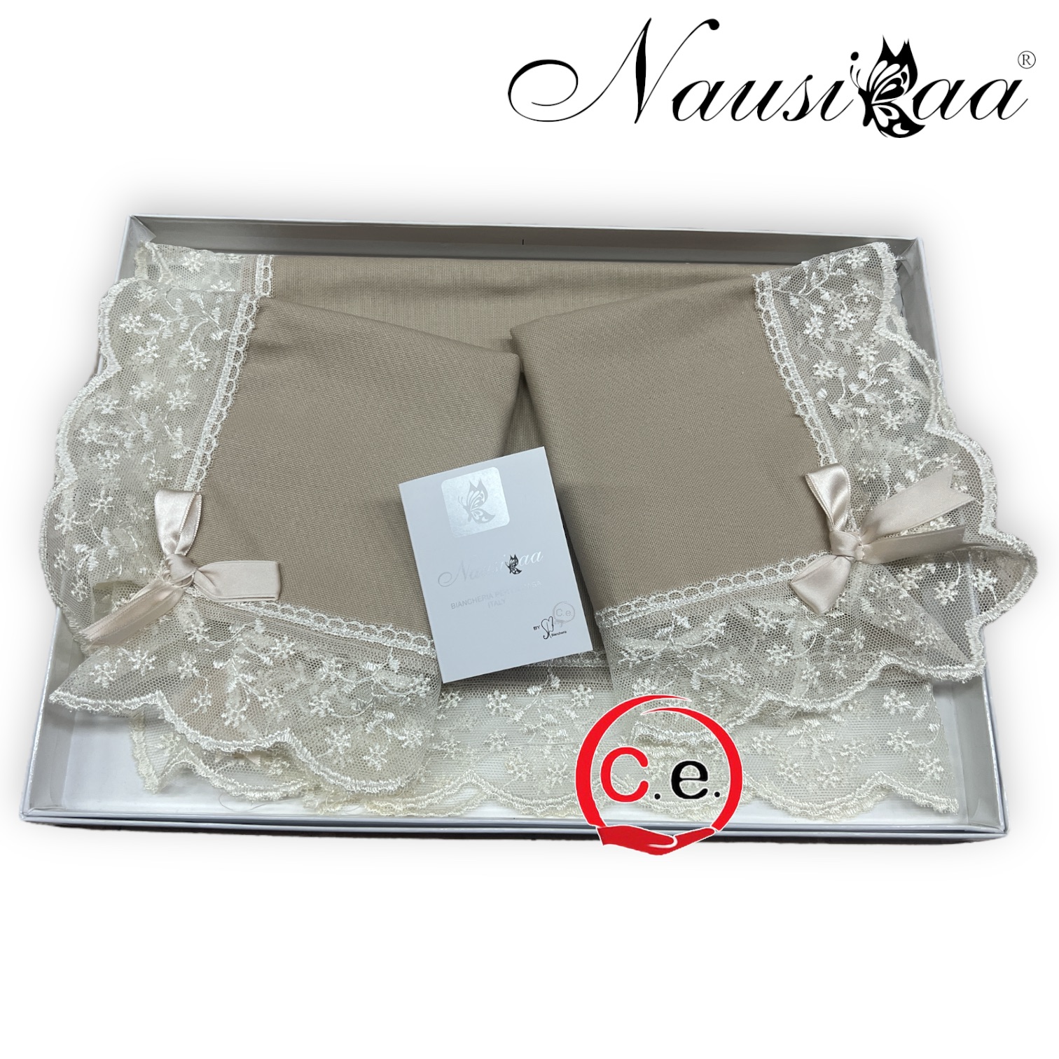 Tris centri Nausicaa in puro lino con pizzo rebrodè