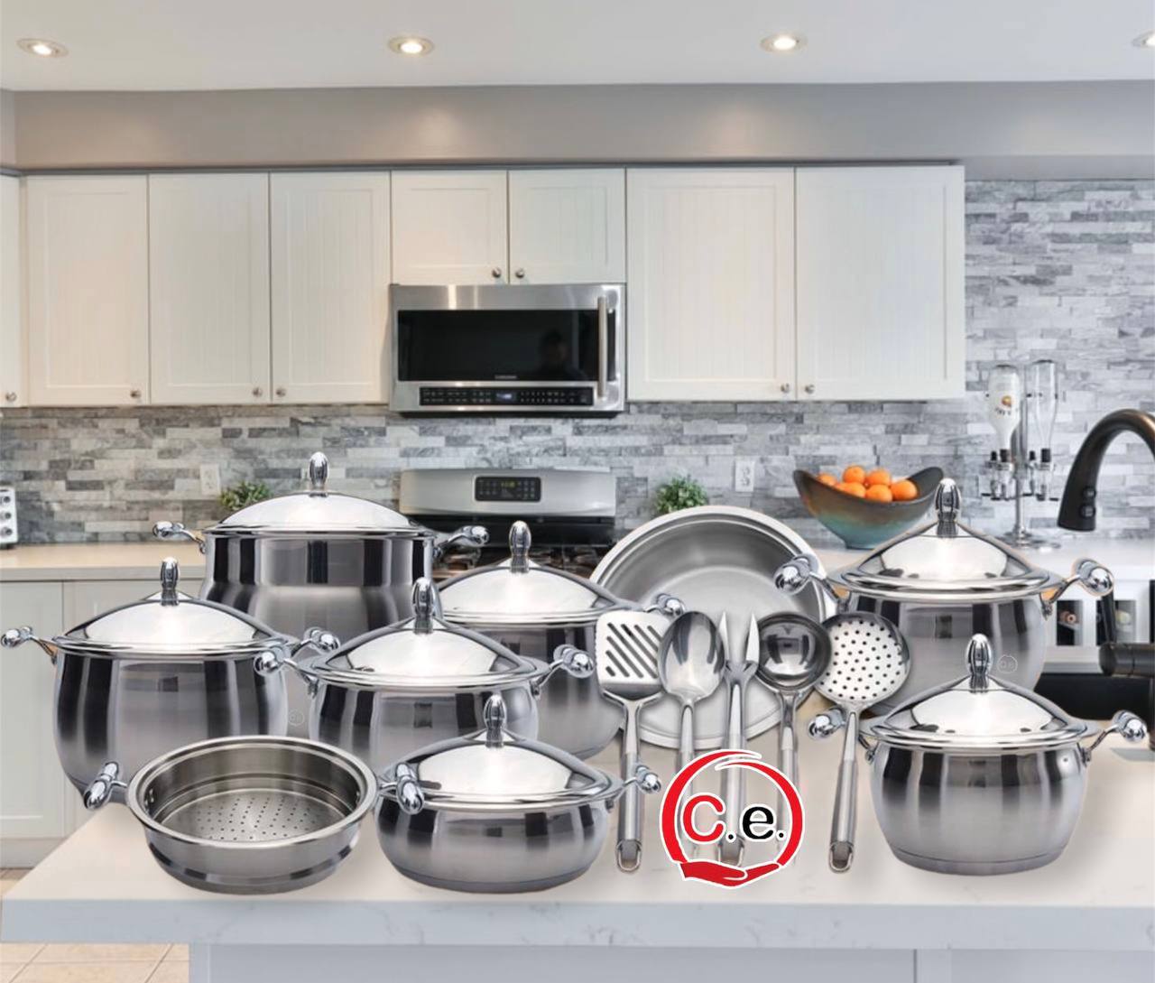 Batteria di pentole 18 pezzi in acciaio inox 18/10