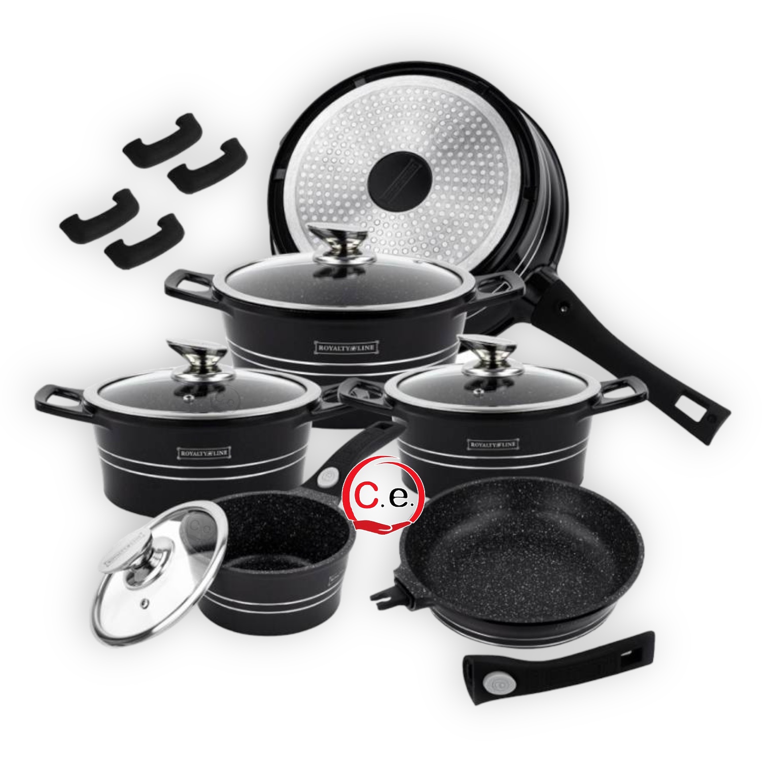 Batteria pentole Royalty line 14 pezzi in pietra lavica