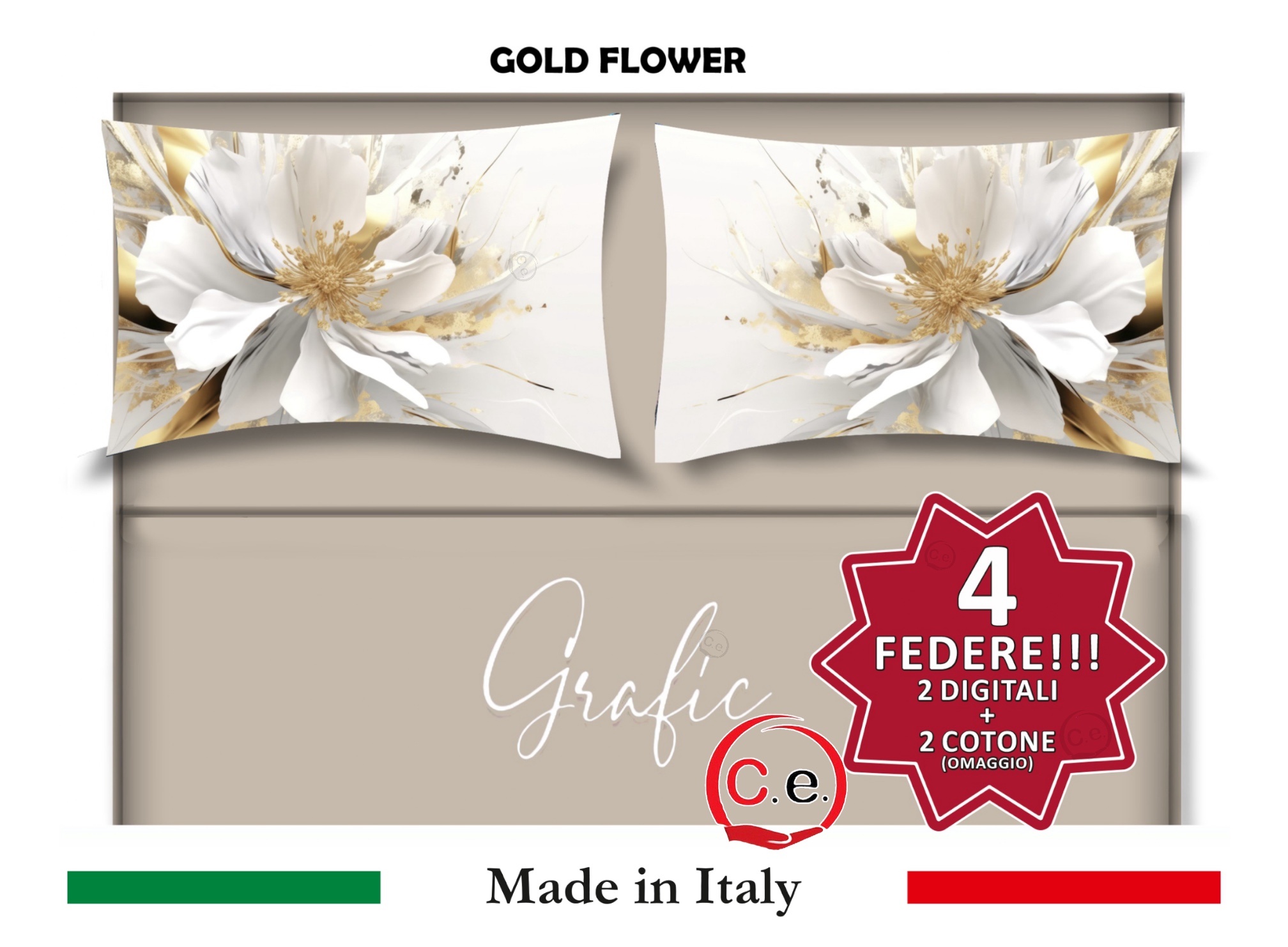 Completo Lenzuola Matrimoniale Disegno Gold Flower Grafic