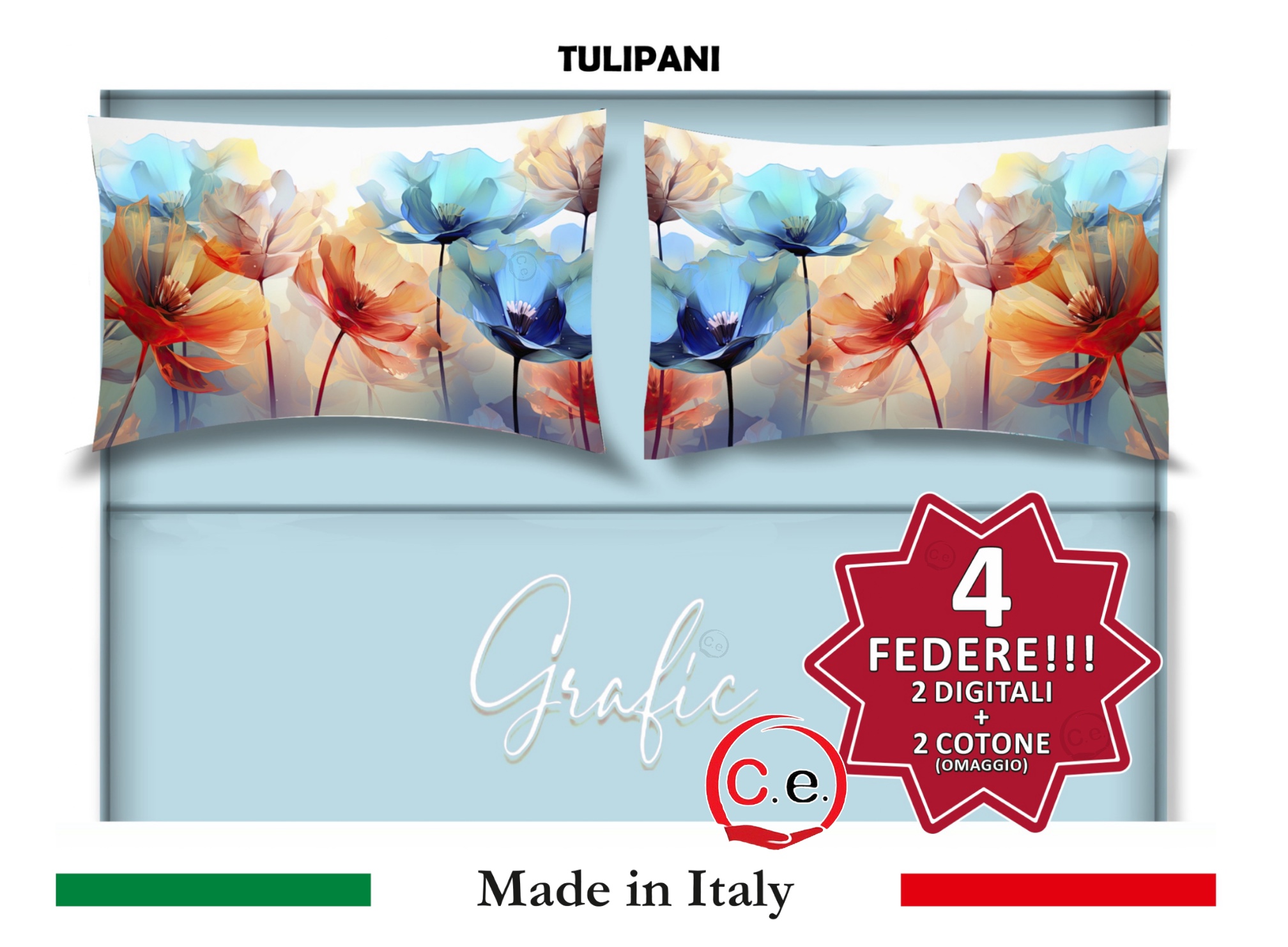 Completo Lenzuola Matrimoniale Disegno Tulipani Grafic