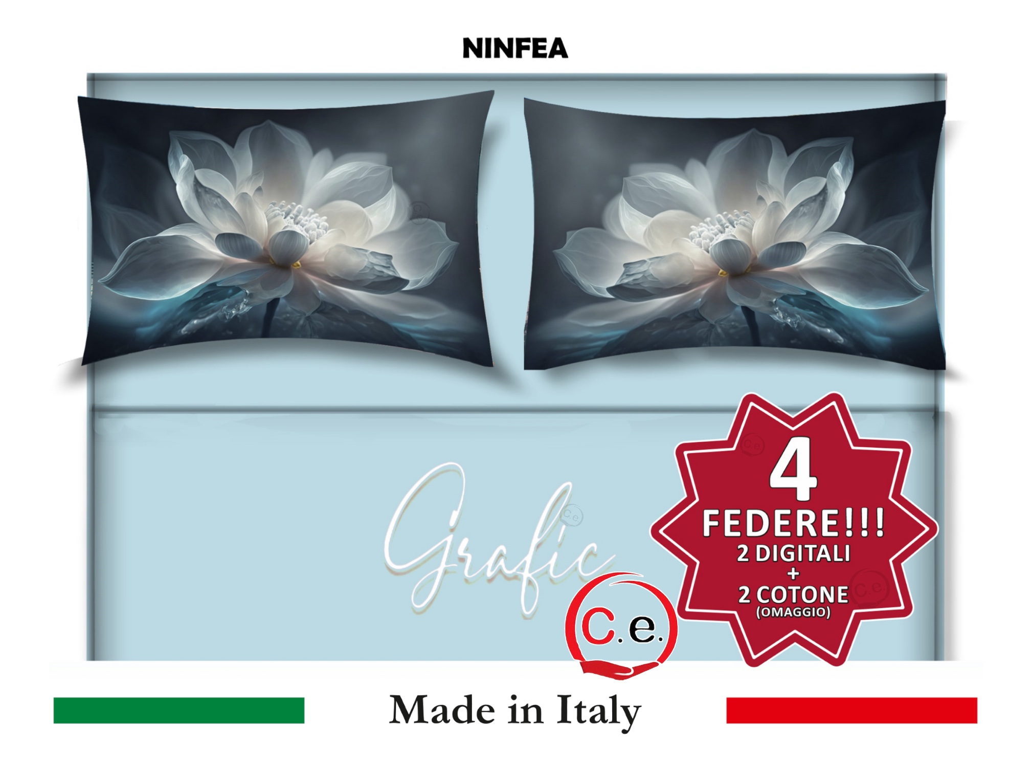 Completo Lenzuola Matrimoniale Disegno Ninfea Grafic