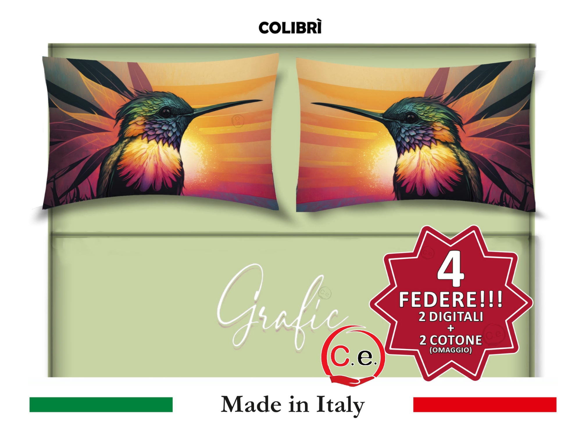 Completo Lenzuola Matrimoniale Disegno Colibrì Grafic