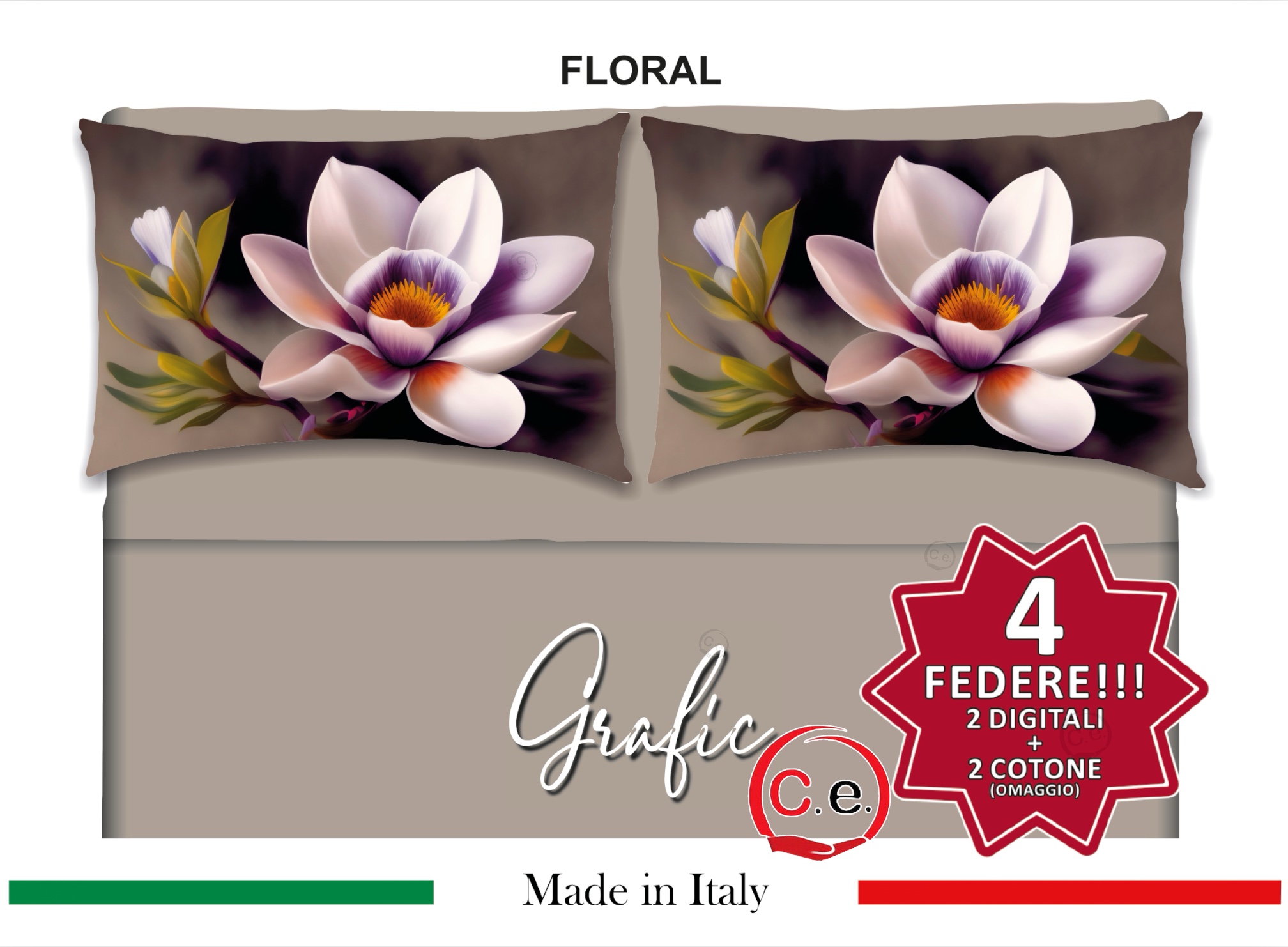 Completo Lenzuola Matrimoniale Disegno Floral Grafic
