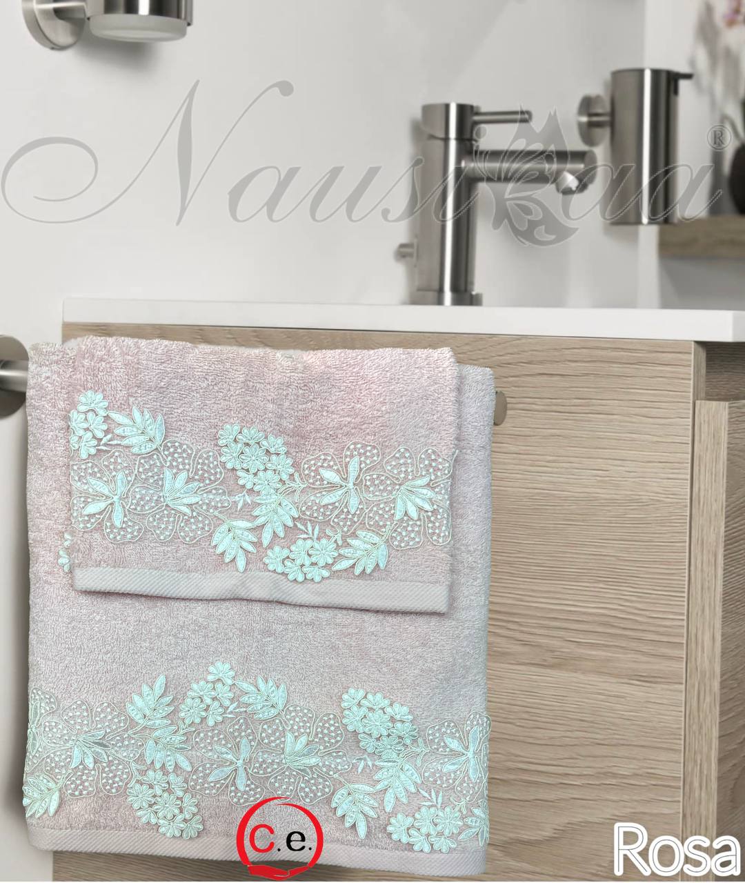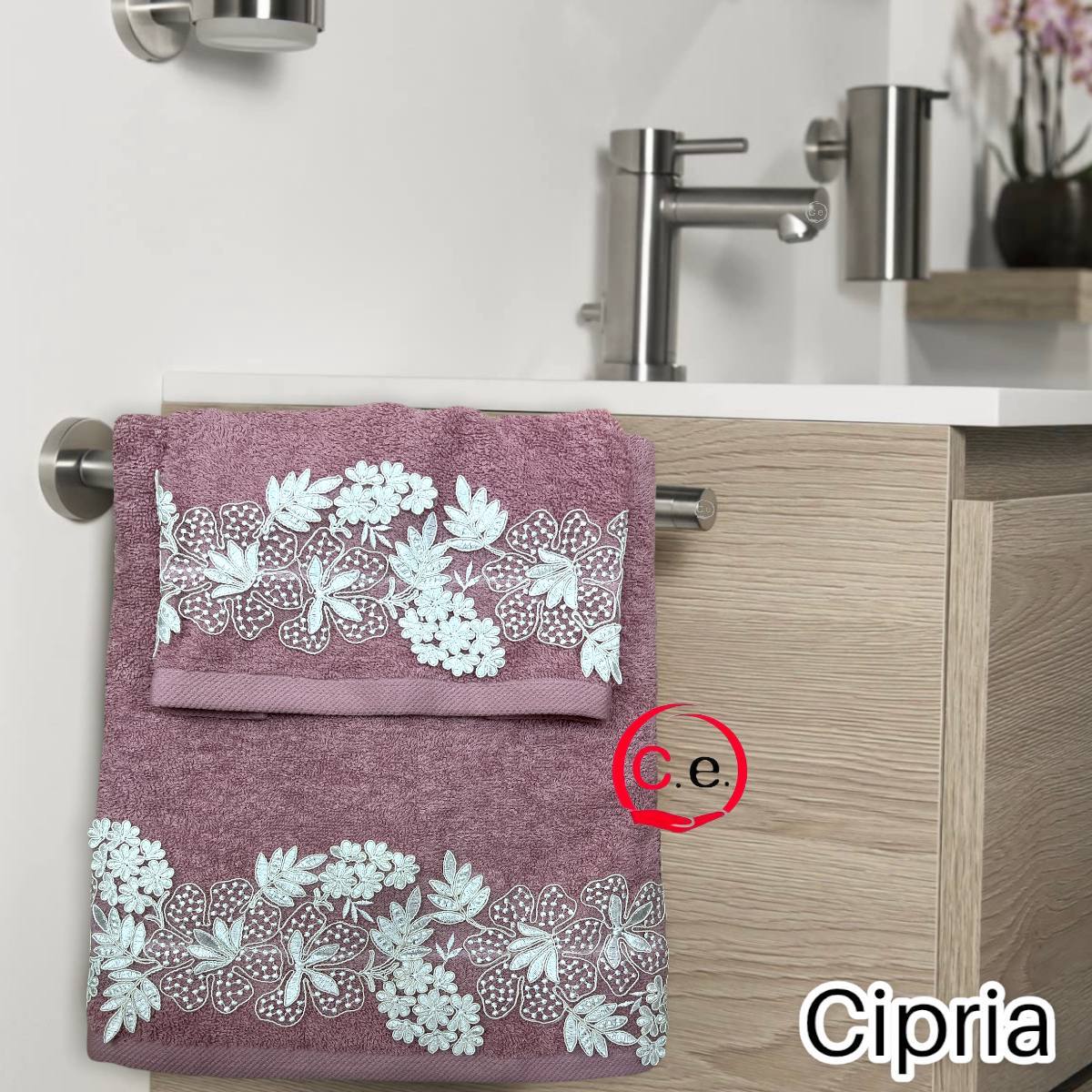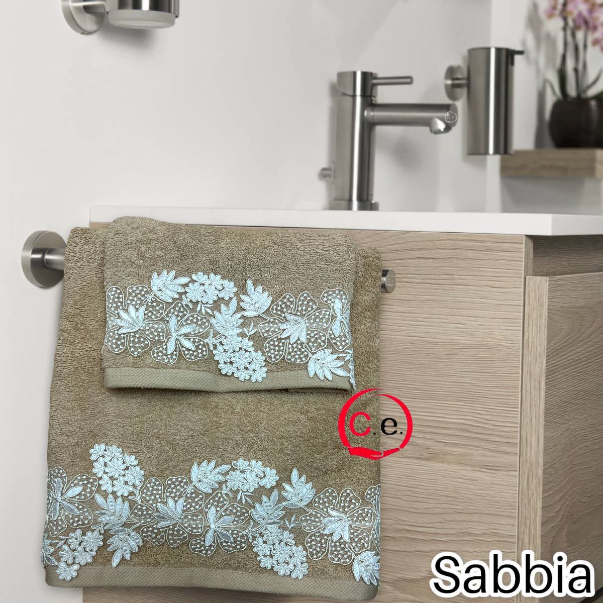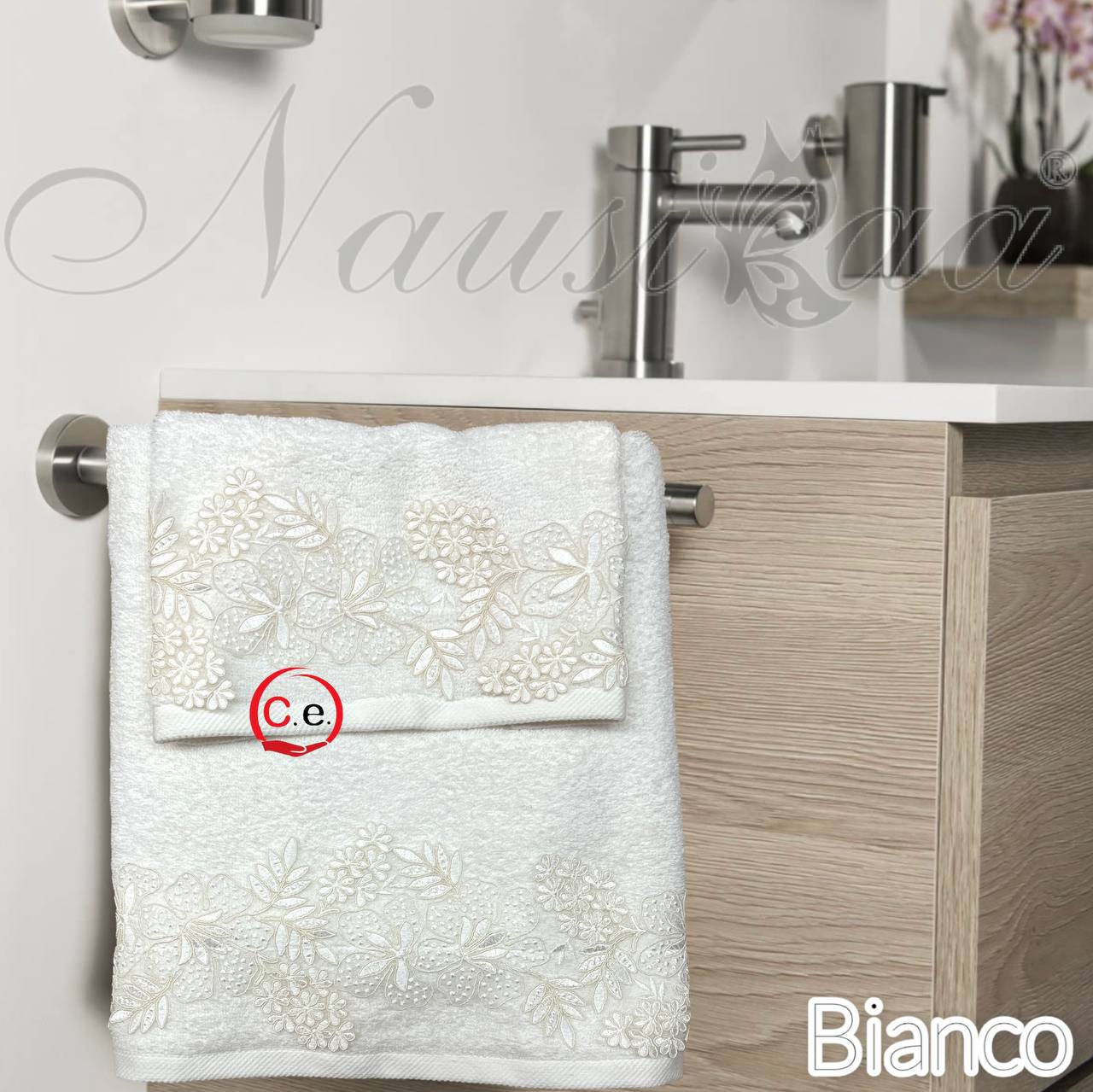 Asciugamani 1+1 Nausicaa art.Gloriana con pizzo lavorato, ricamato in Rebrodè