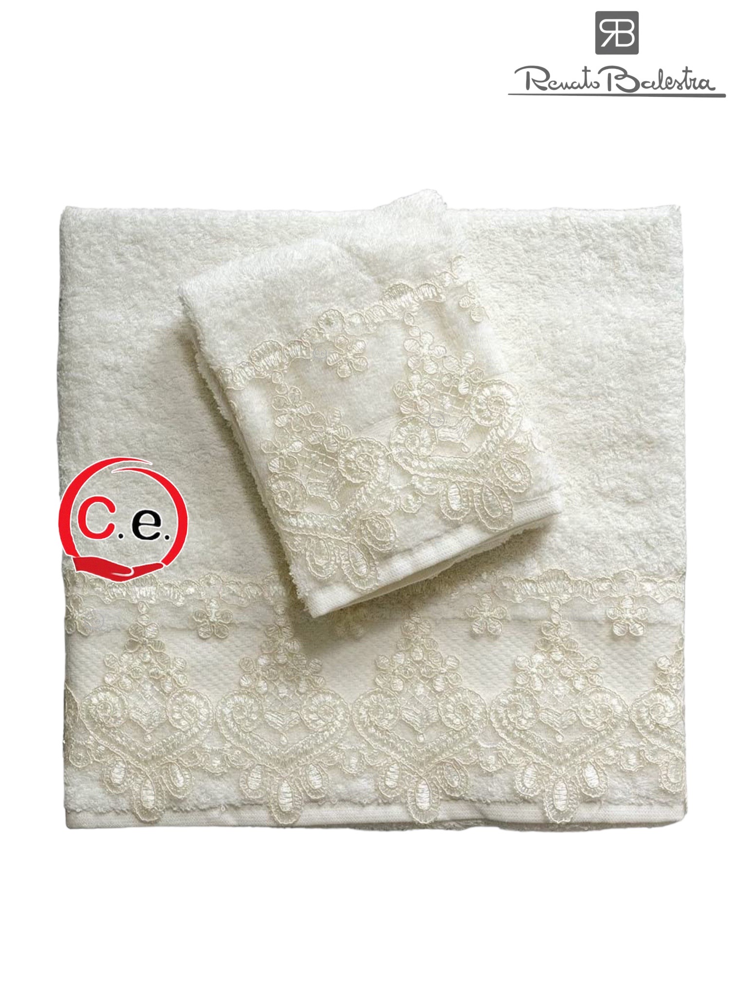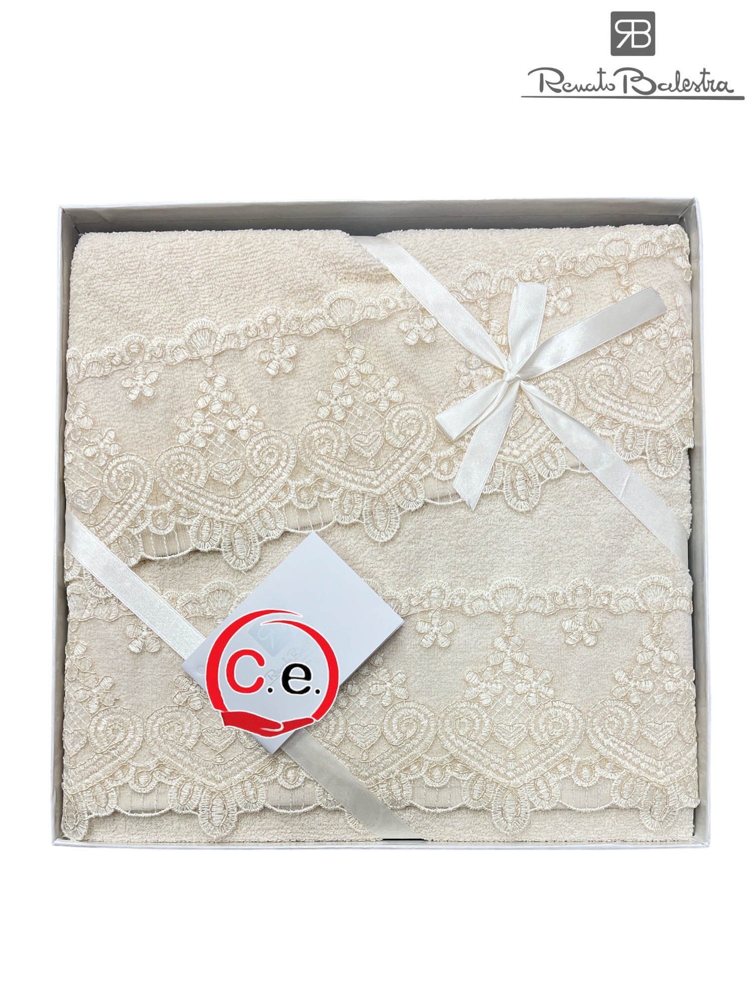In spugna pregiata e pizzo in rebrodè ricamato