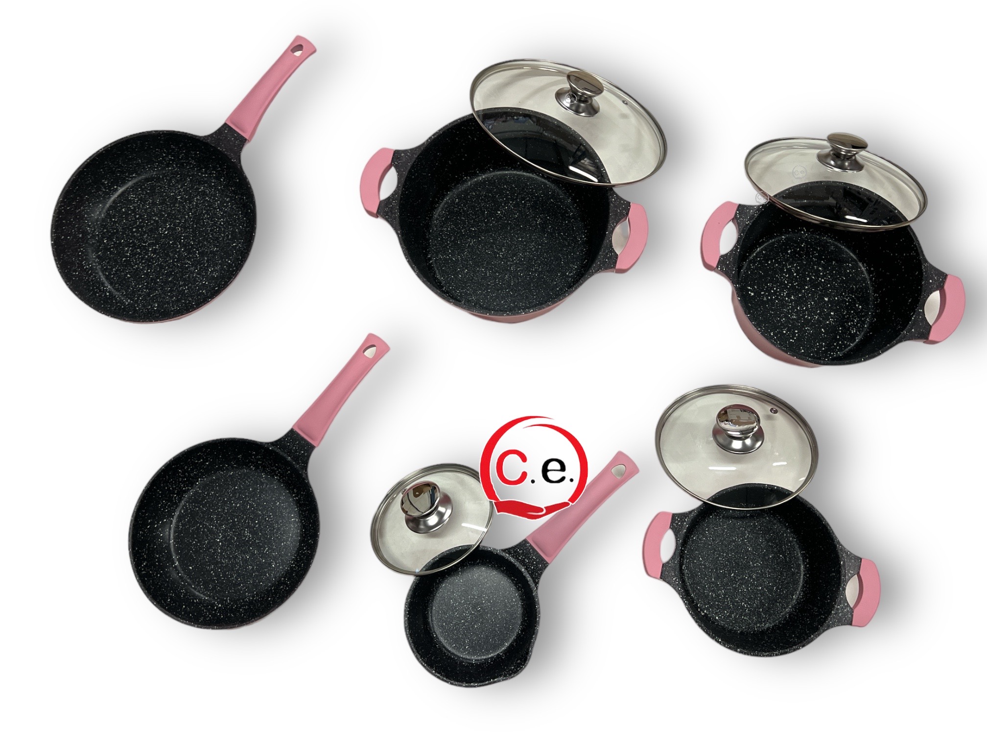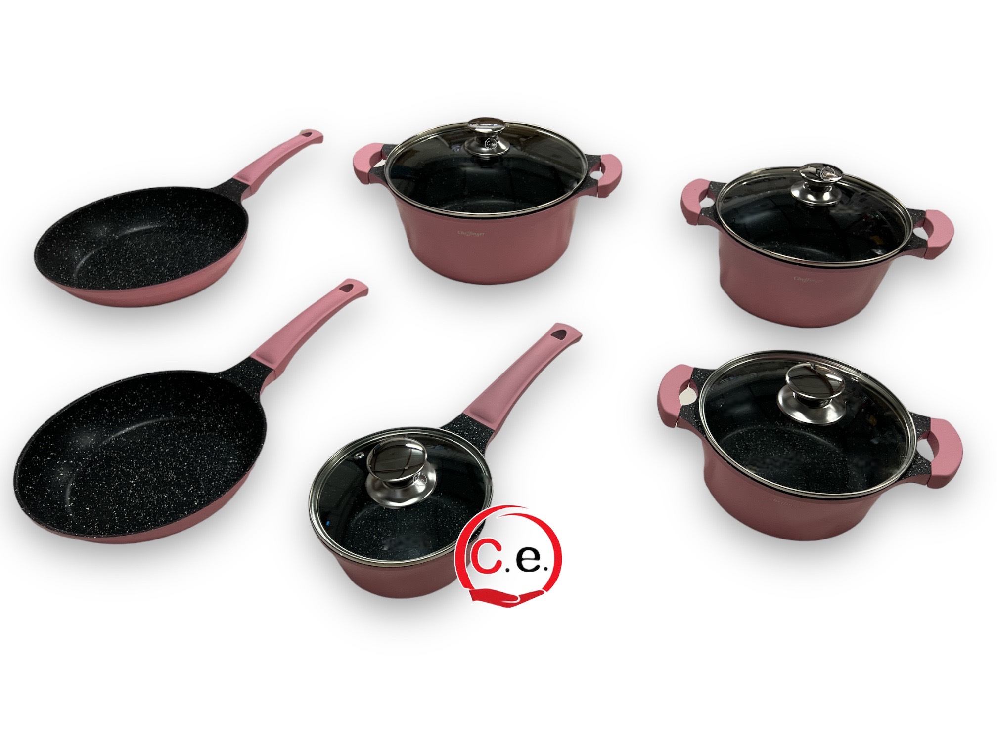 Set di pentole e padelle Cheffinger in alluminio pressofuso con coperchio in vetro