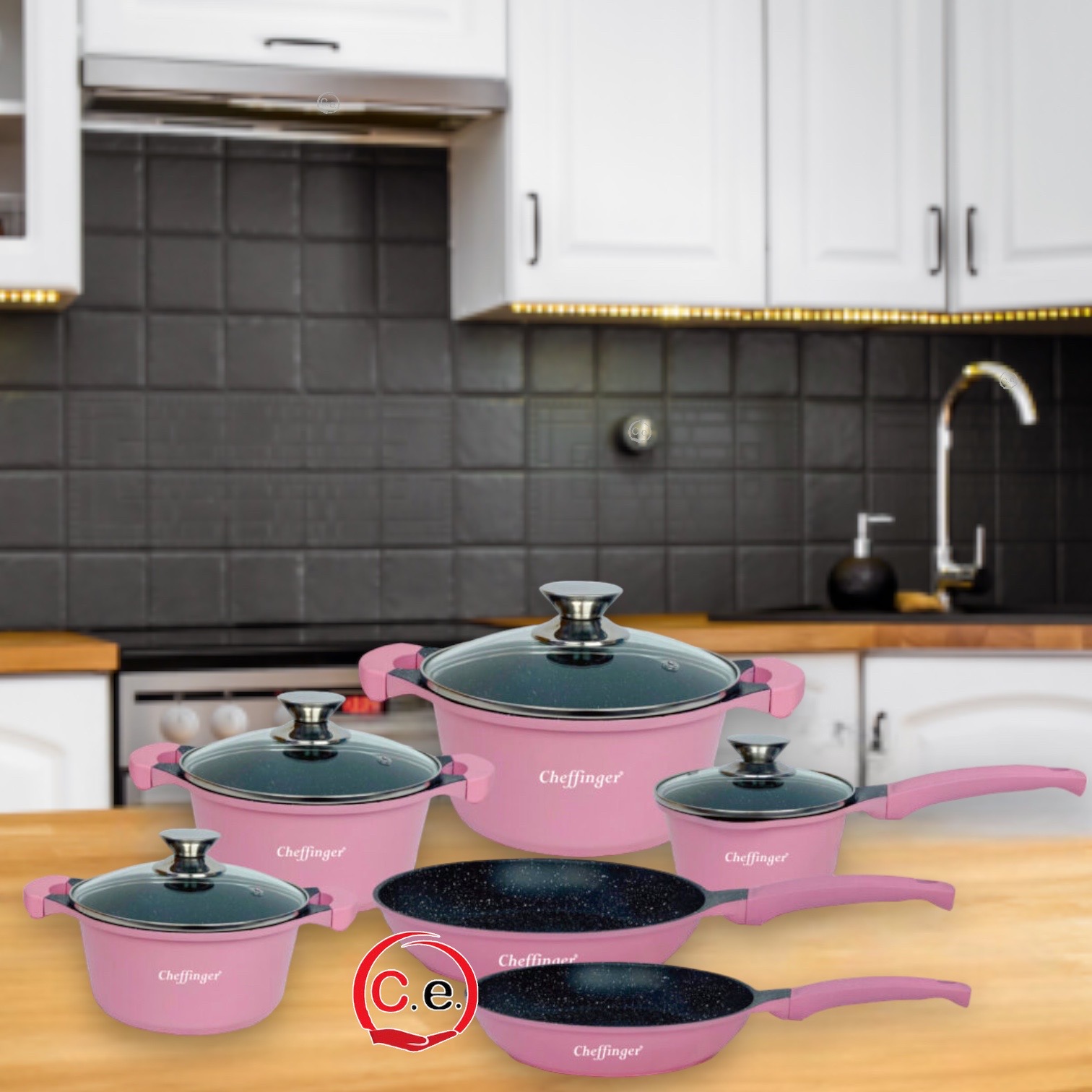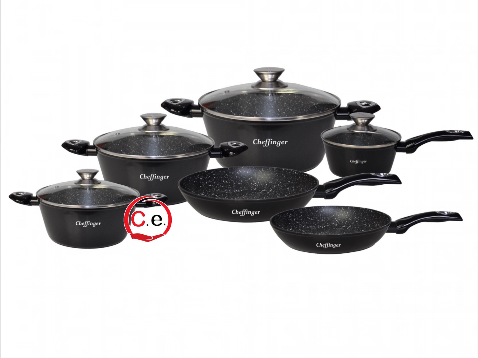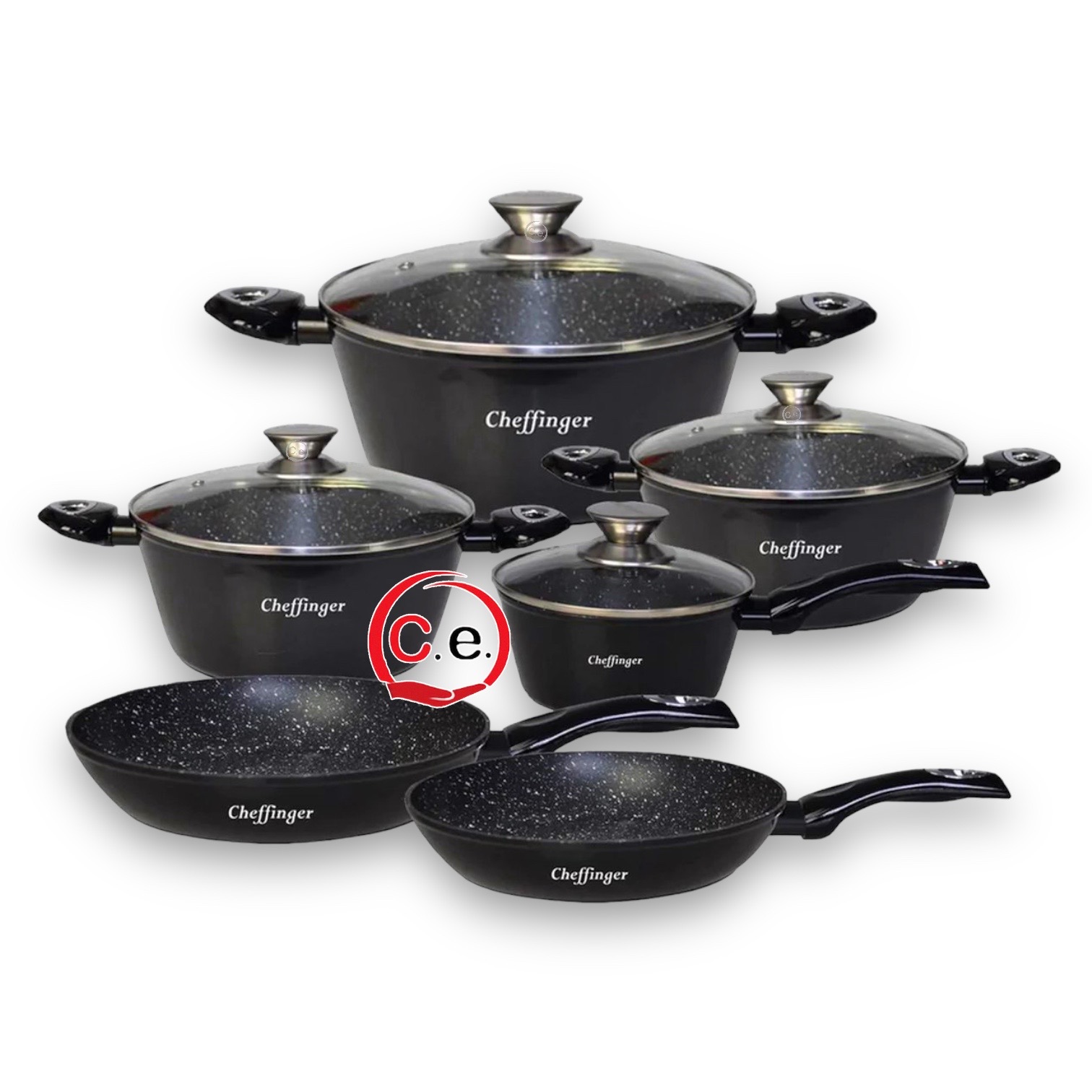 Set di pentole e padelle Cheffinger con coperchio in vetro Con questo set da cucina da 10 pezzi puoi preparare i piatti più deliziosi.