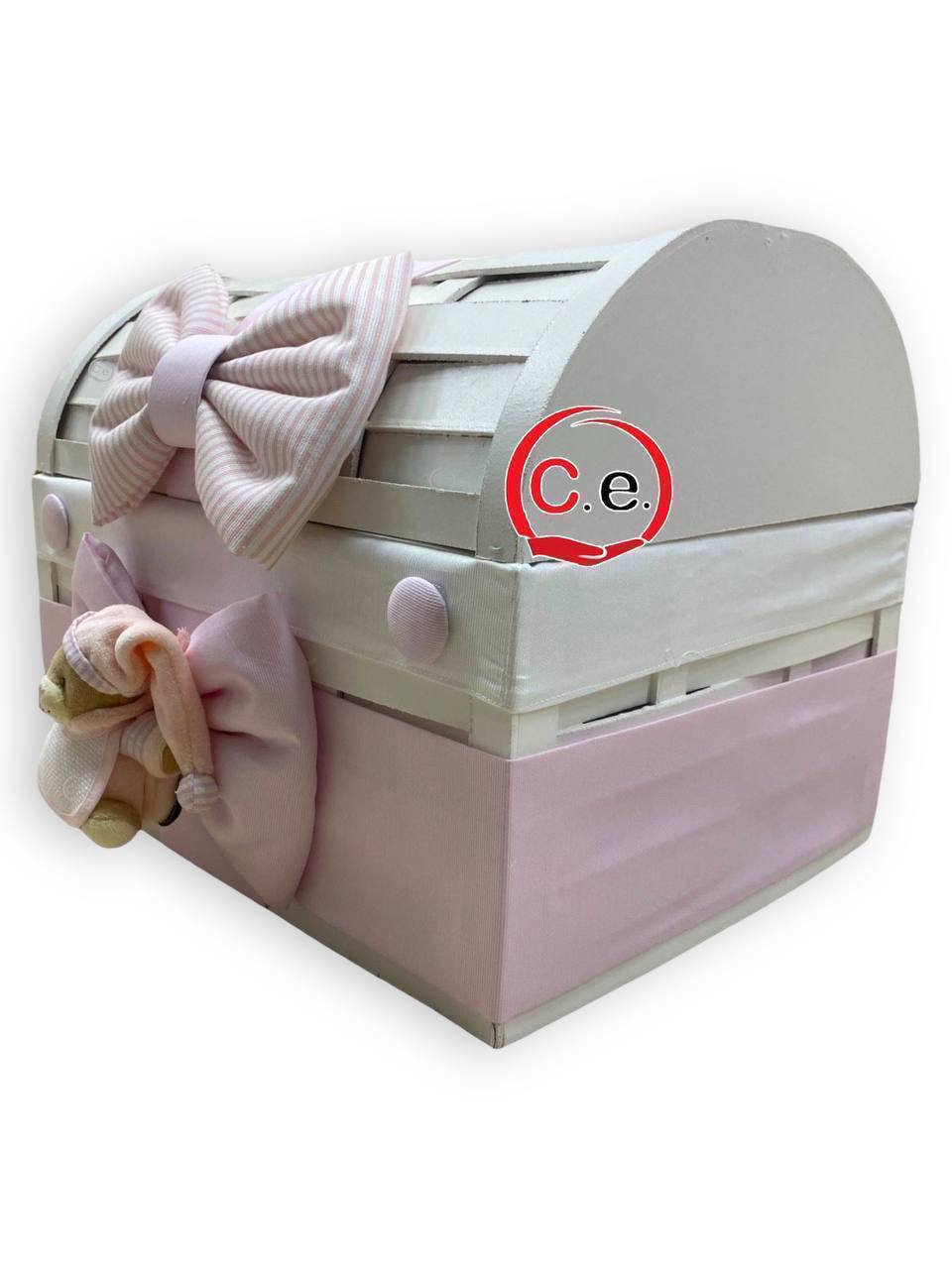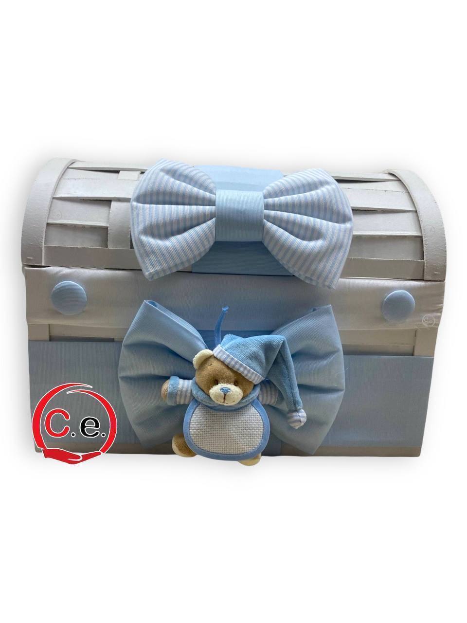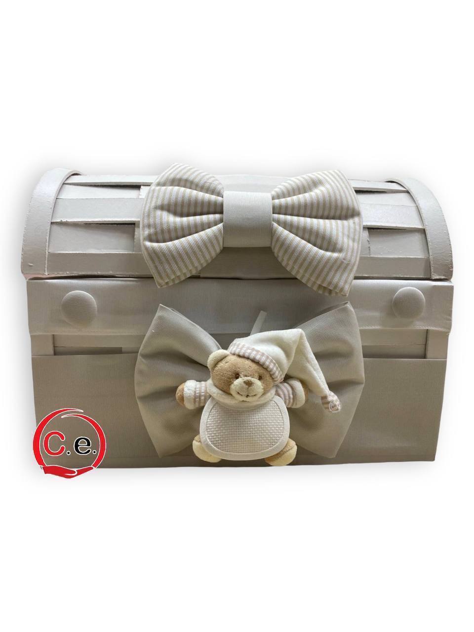 Baule grande Neonato 👶🏼 in legno fatto a mano con fiocco e pupazzo