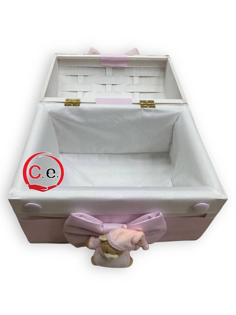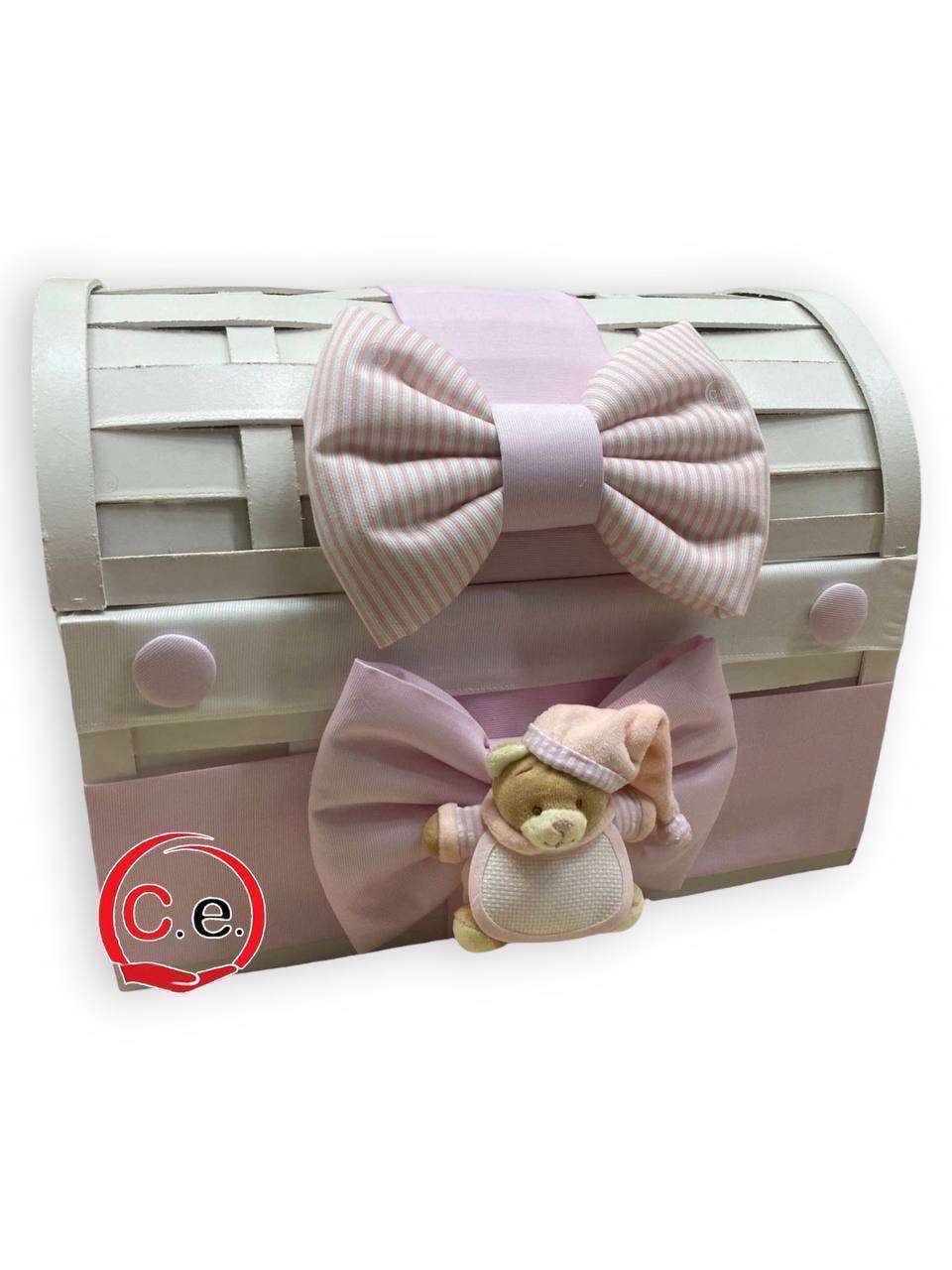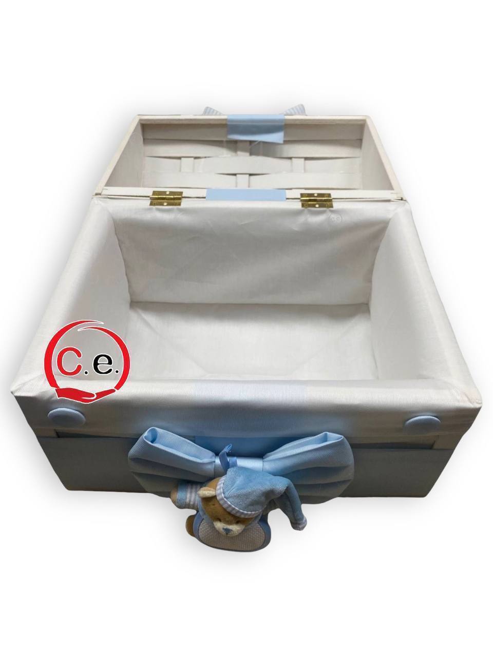 Baule grande Neonato 👶🏼 in legno fatto a mano con fiocco e pupazzo