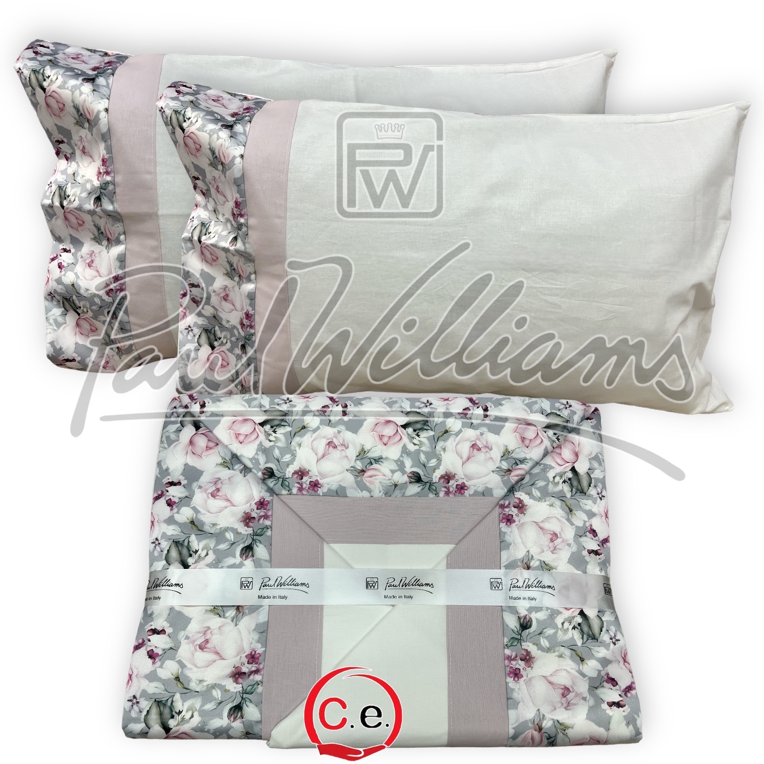 Completo lenzuola PaulWilliams Beatrice con doppio bordo, fascia digitale in raso & cotone ad alta definizione