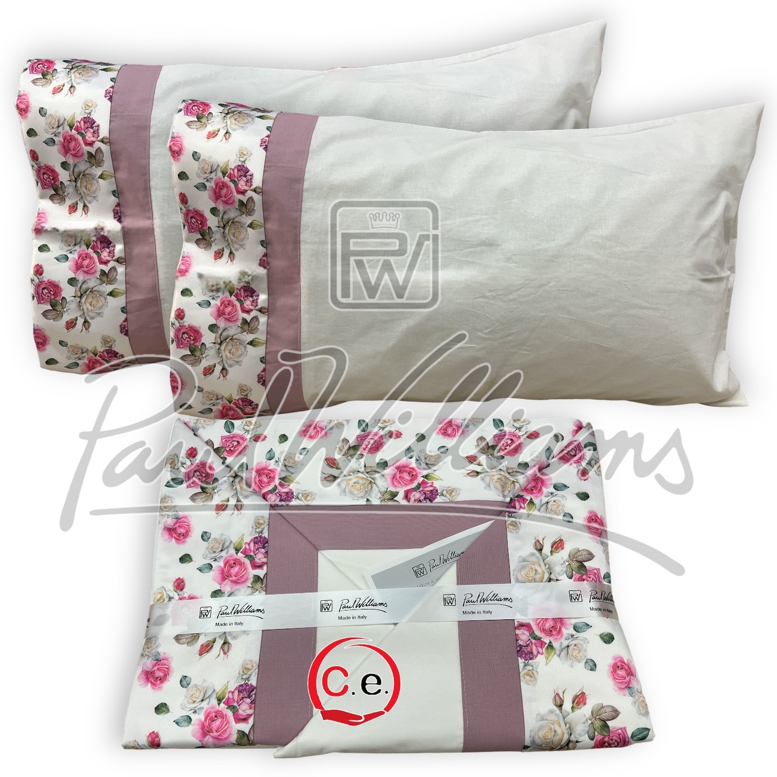 Completo lenzuola PaulWilliams Clara con doppio bordo, fascia digitale in raso & cotone ad alta definizione