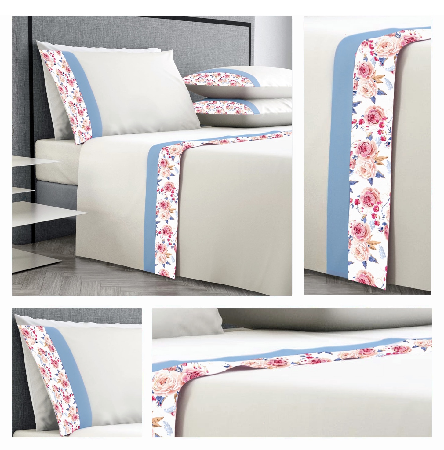 Completo lenzuola PaulWilliams Flavia con doppio bordo, fascia digitale in raso & cotone ad alta definizione
