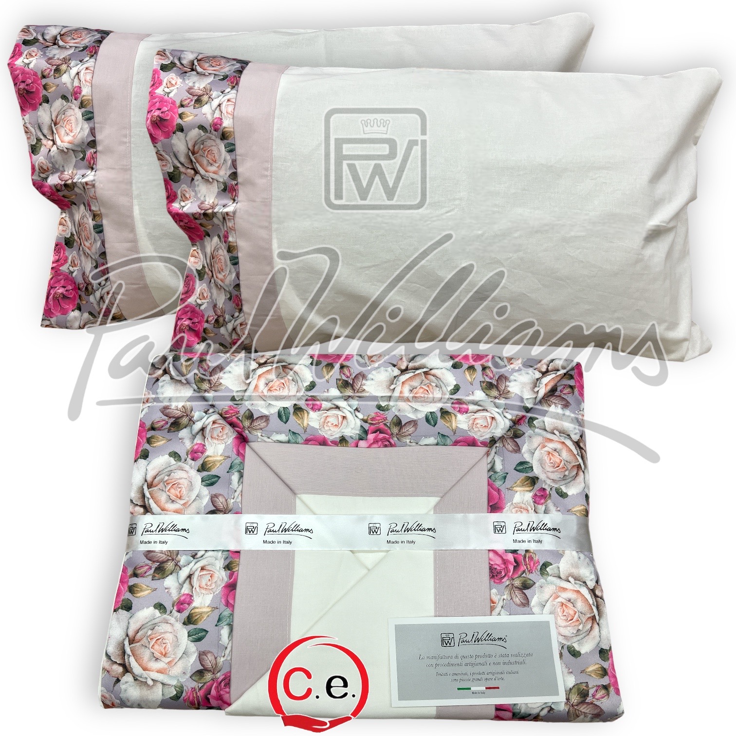 Completo lenzuola PaulWilliams Martina con doppio bordo, fascia digitale in raso & cotone ad alta definizione