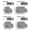 | Misure | Poltrona, 2 Posti, 3 Posti, 4 Posti |
