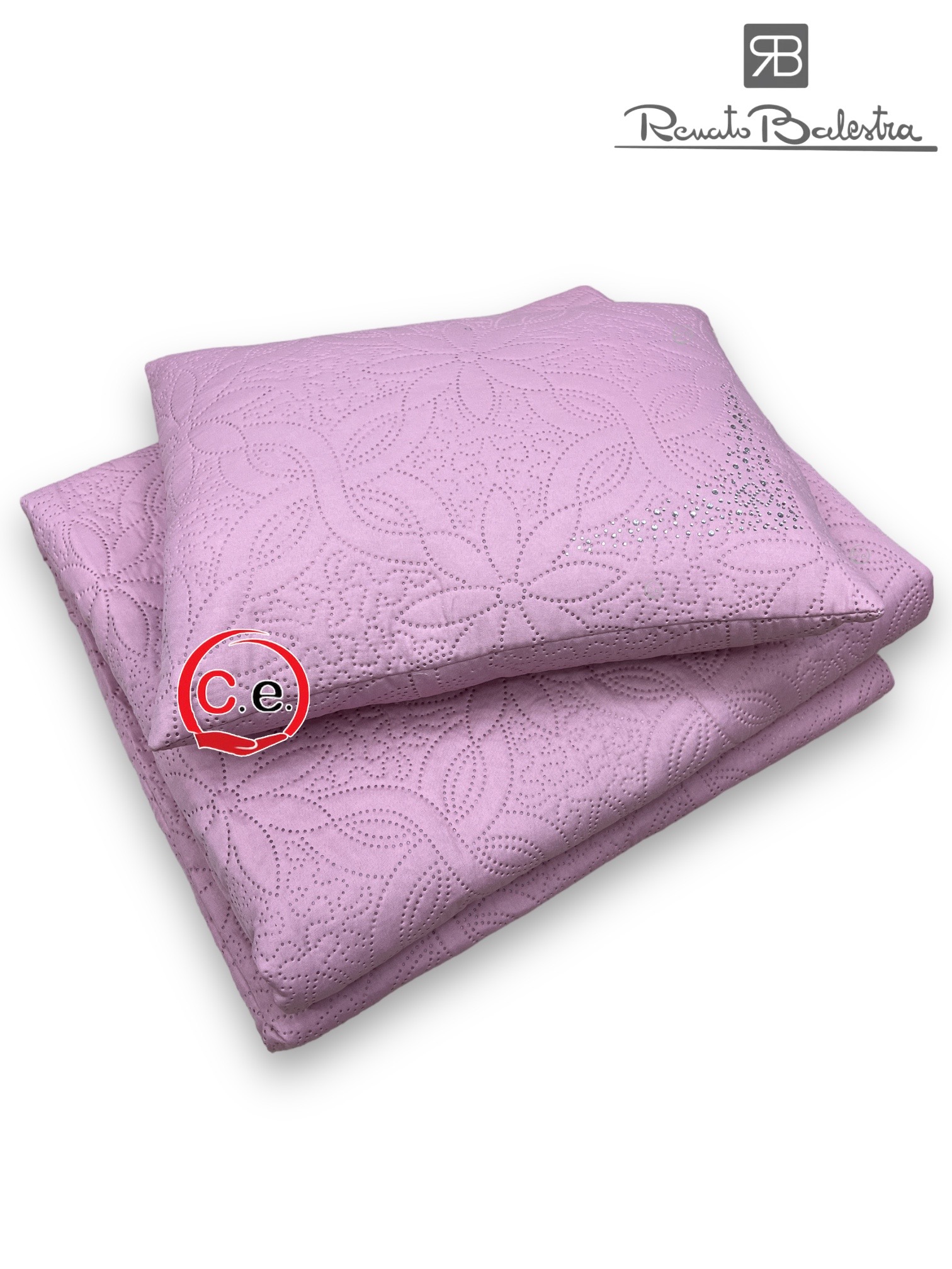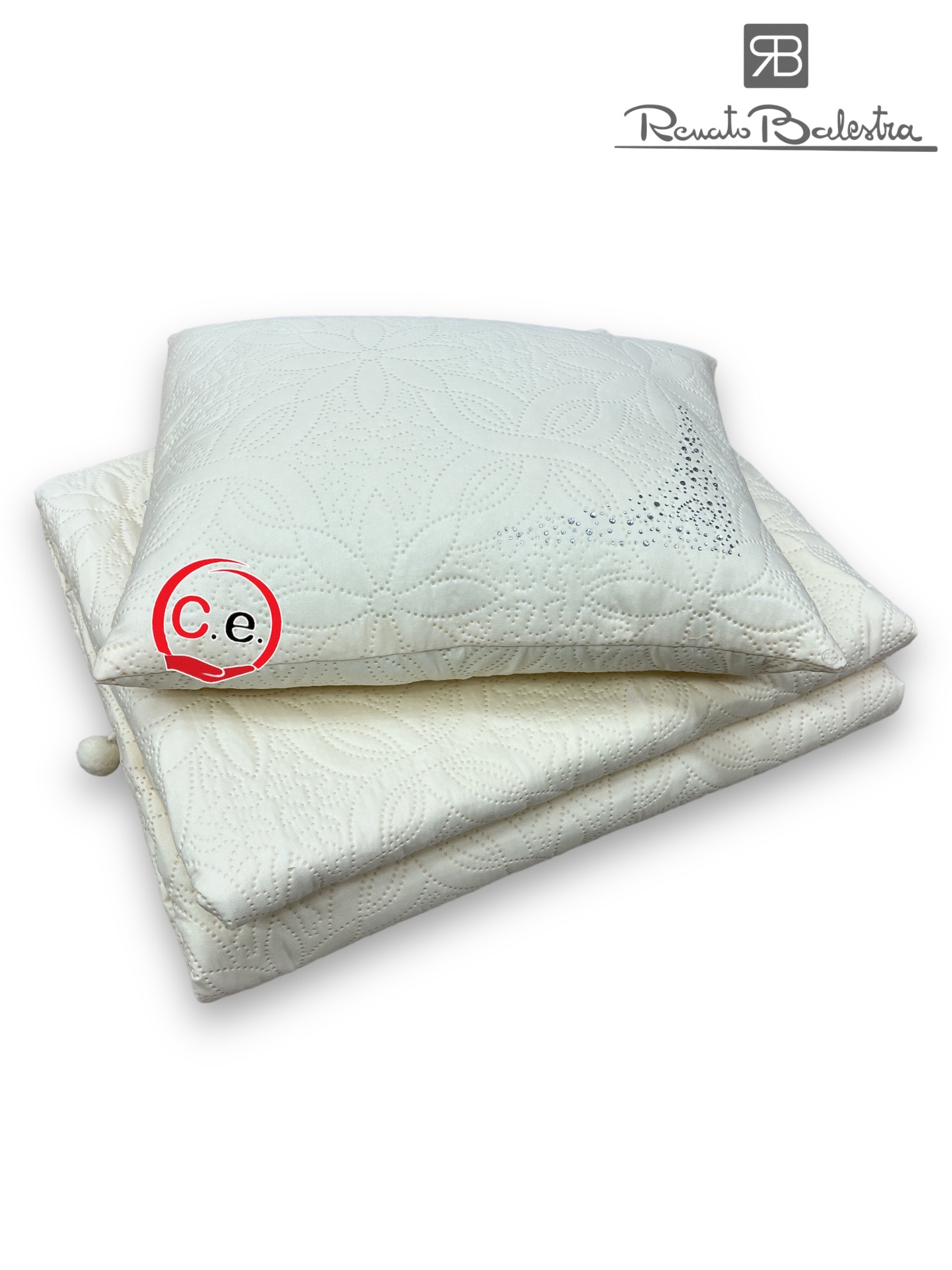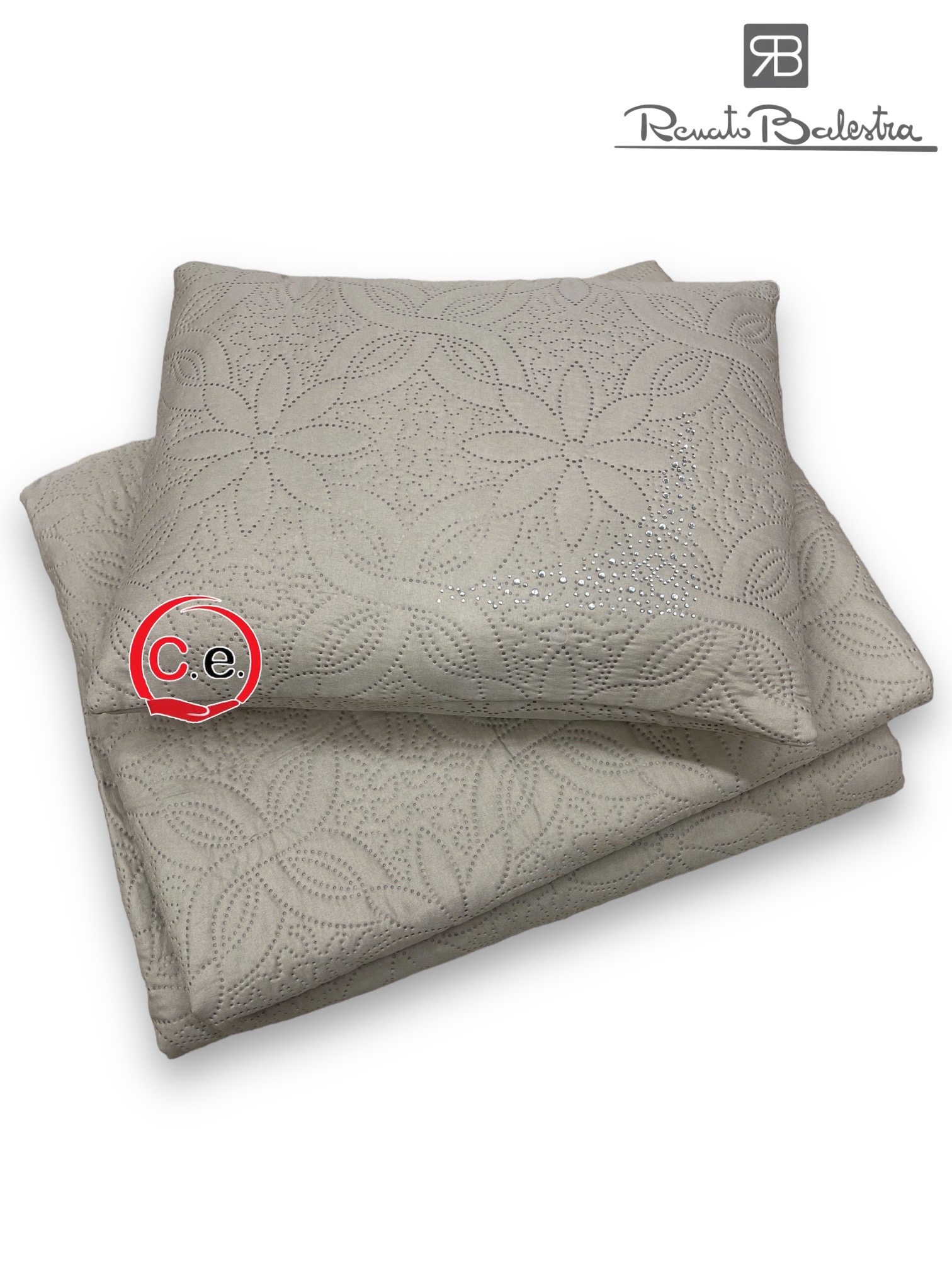 Matrimoniale misura 265x265cm con PonPon applicati e cuscino con SwarovskiColori disponibili;• Tortora• Cipria• Panna• Grigio