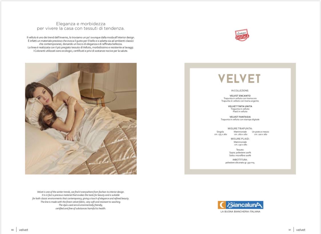 La linea e realazata con il più pregiato tessuto di Velluto, morbidissimo e resistente al lavaggi.