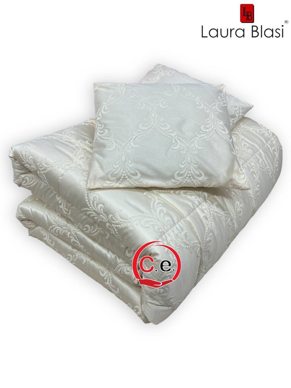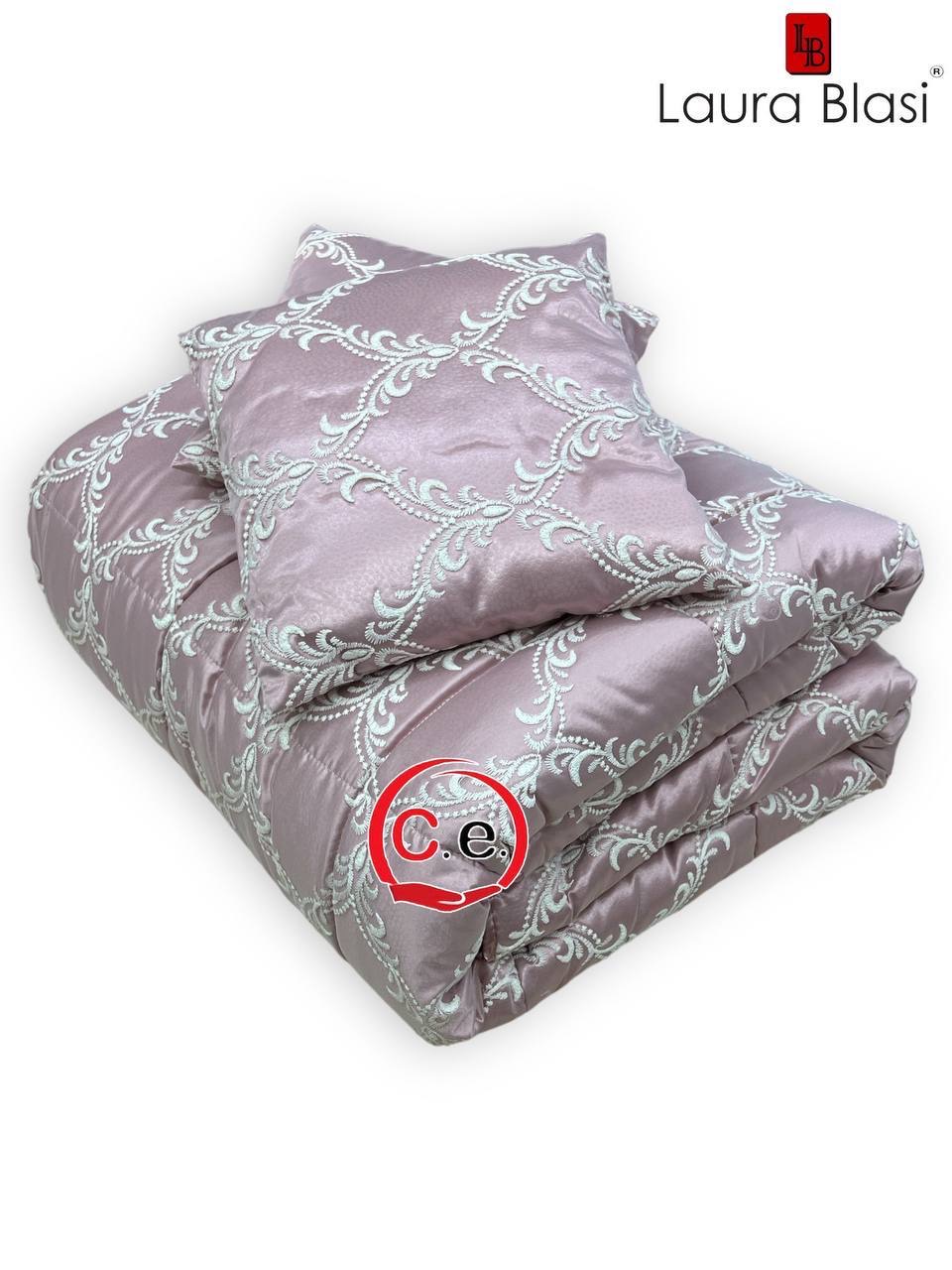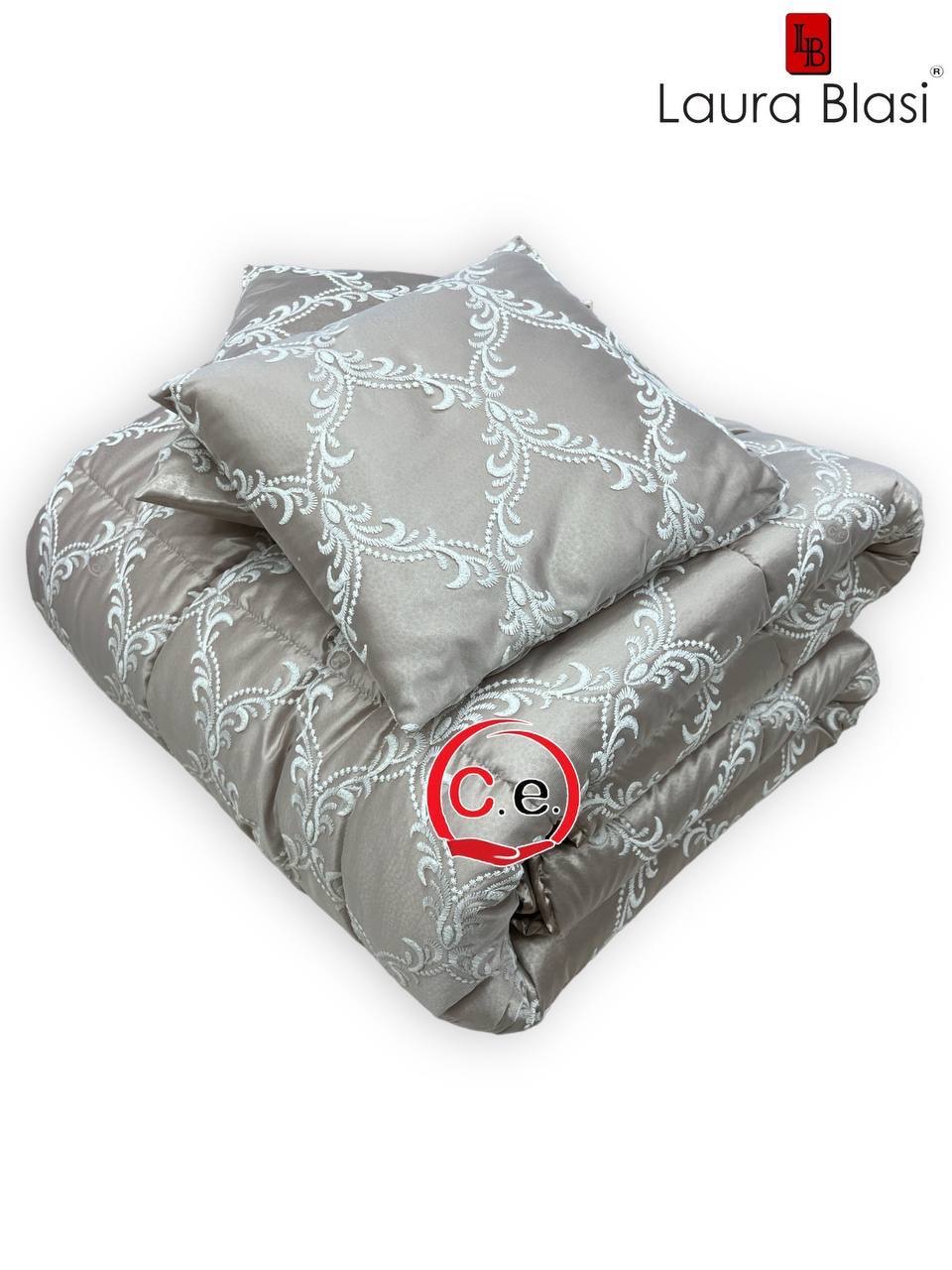 Questa trapunta presenta un tessuto in raso ricamato con 2 cuscini arredo coordinati.