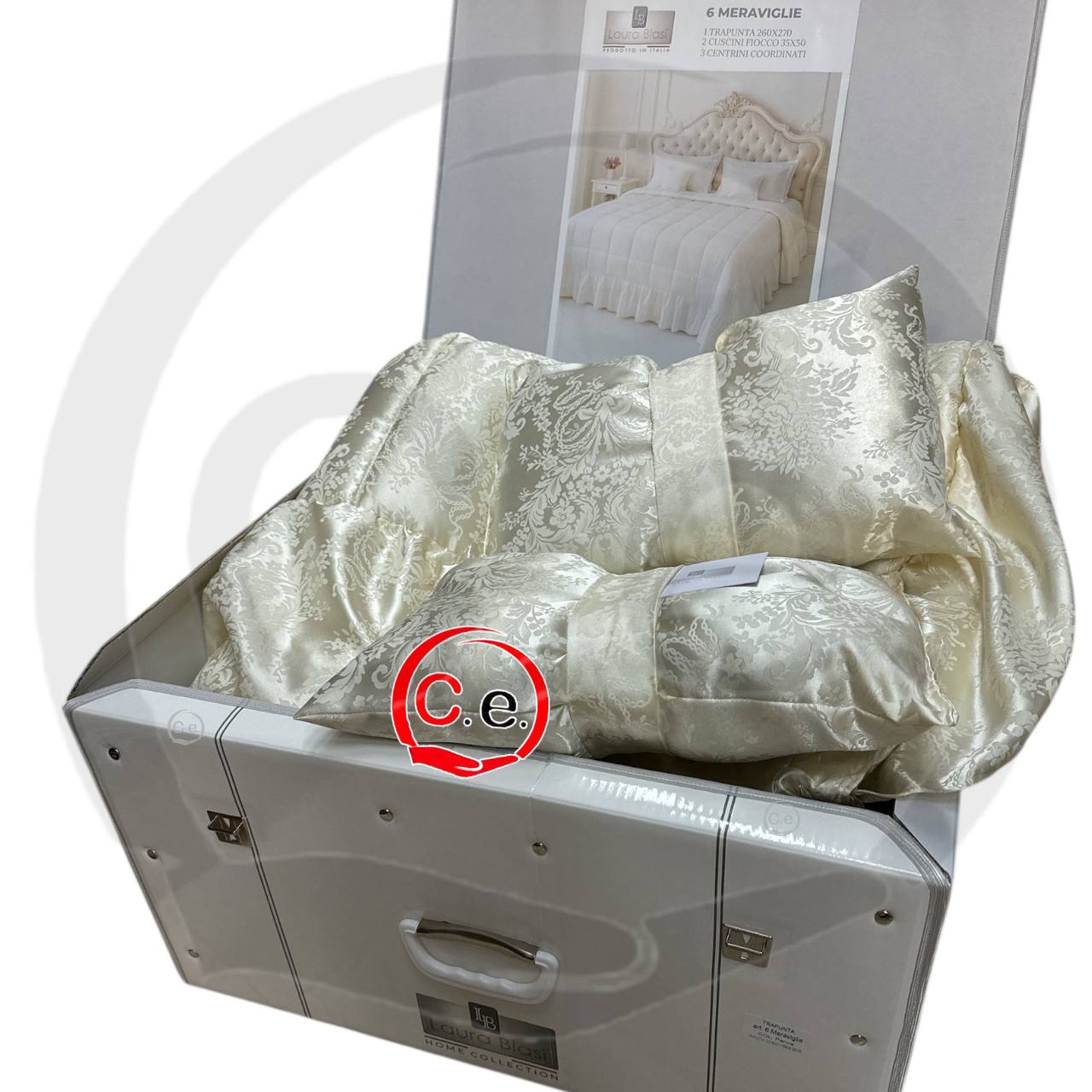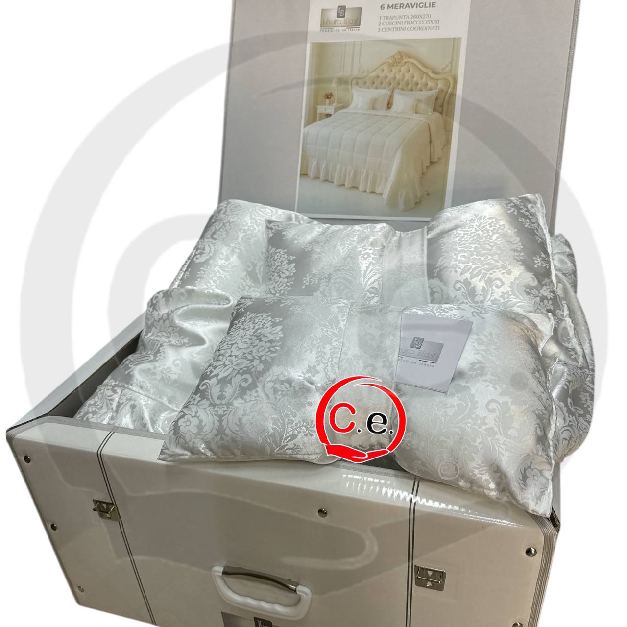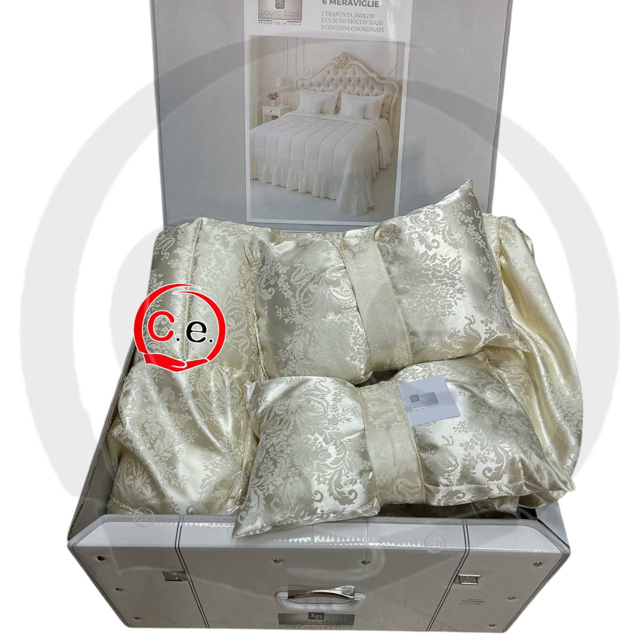 Con fascia ricamata applicata, 2 cuscini coordinati a forma di fiocco 🎀 come in foto, 3 centrini coordinati tessuto lavorato ricamato nei minimi particolari
