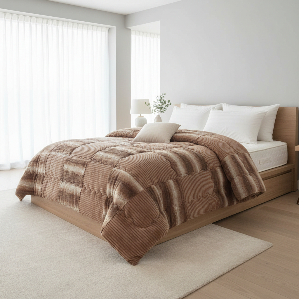 In velluto cinigliato a pelo soffice, caldo e morbidissimo.