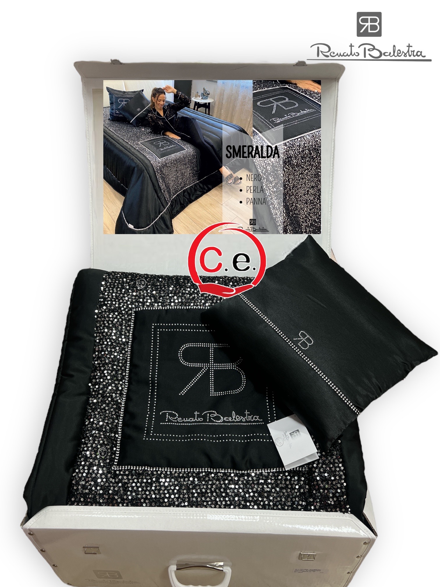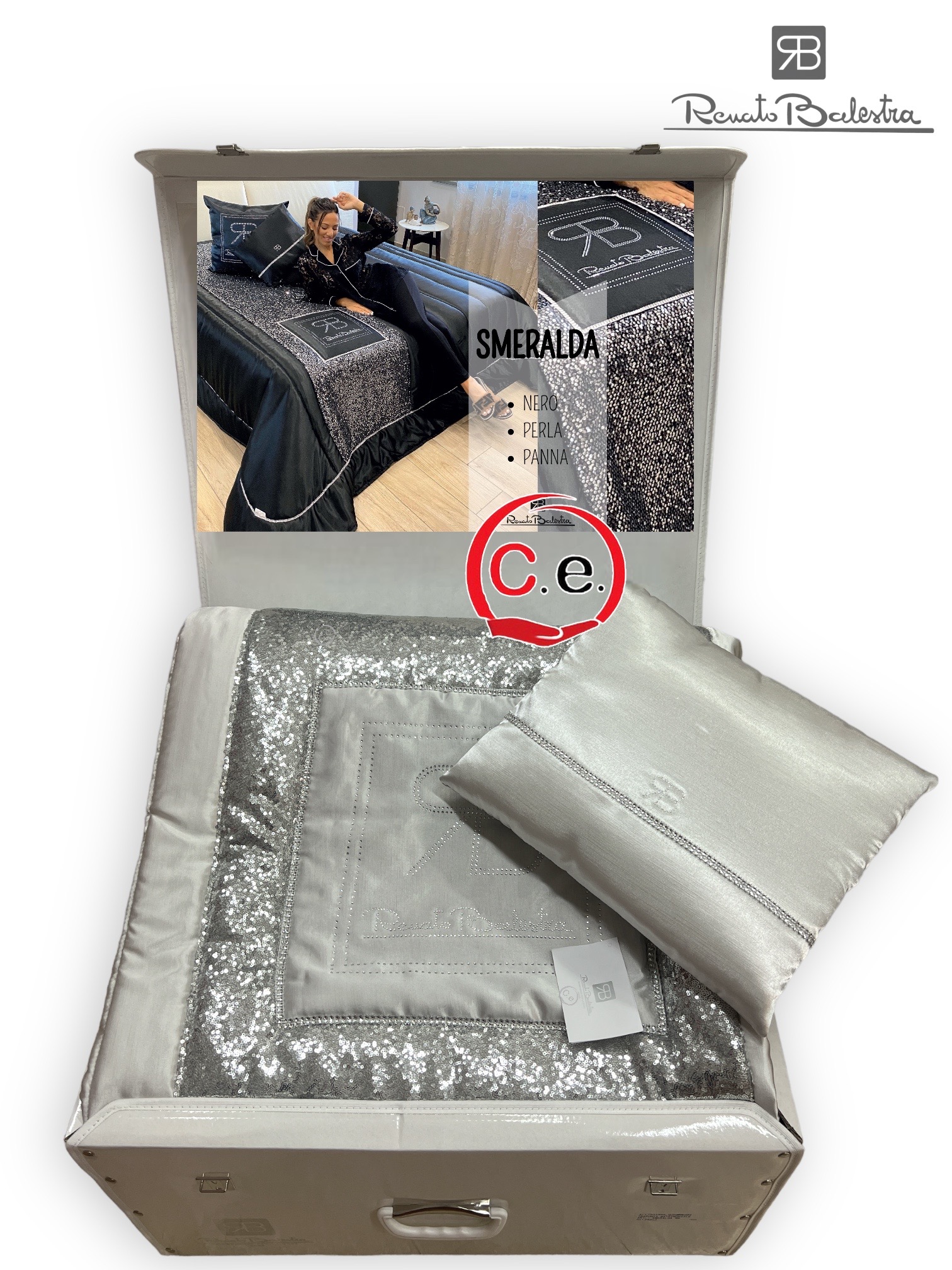 Con paillettes & Swarovski, lavorata e ricamata nei minimi particolari, con 2 cuscini arredo coordinati
