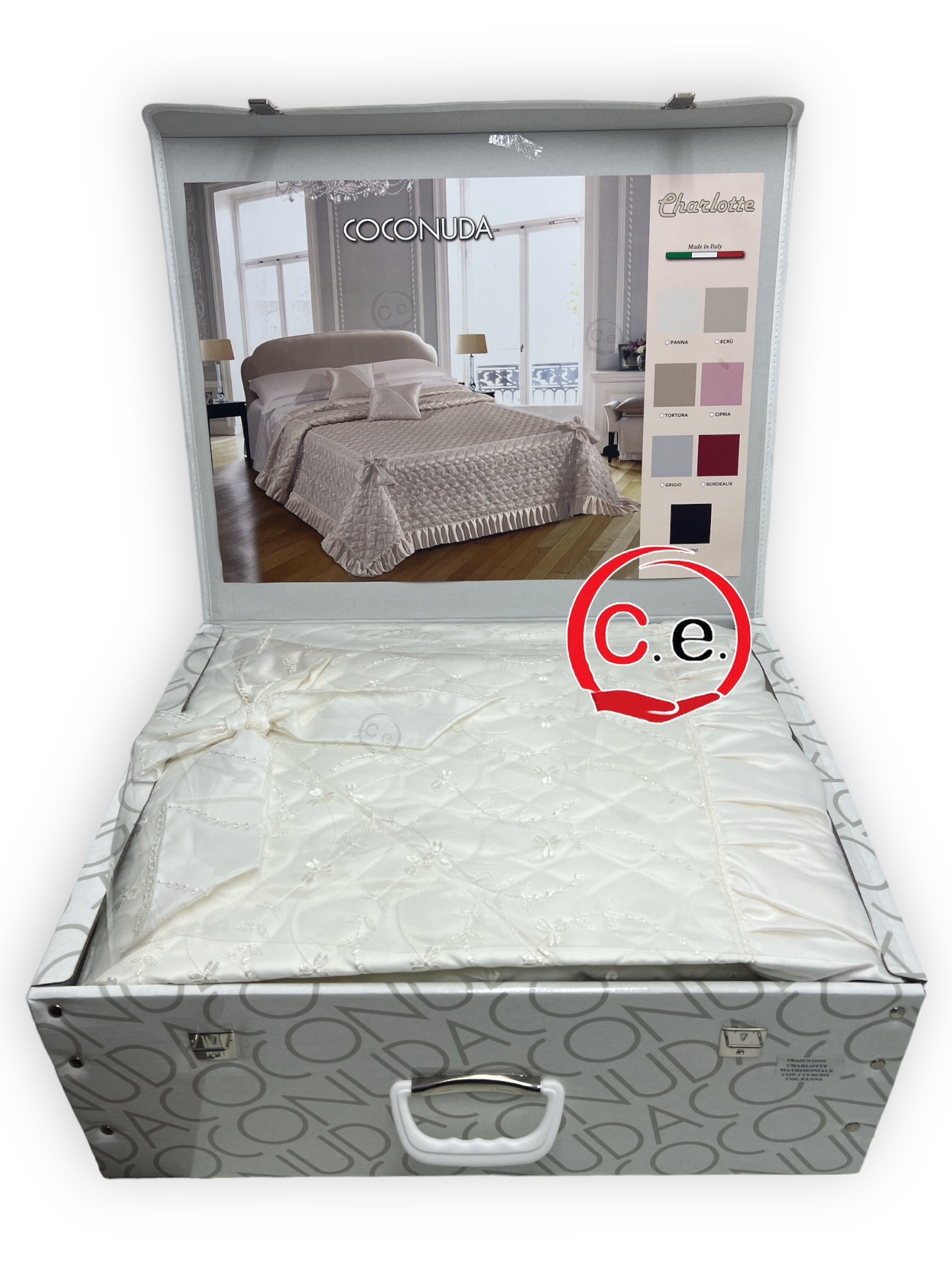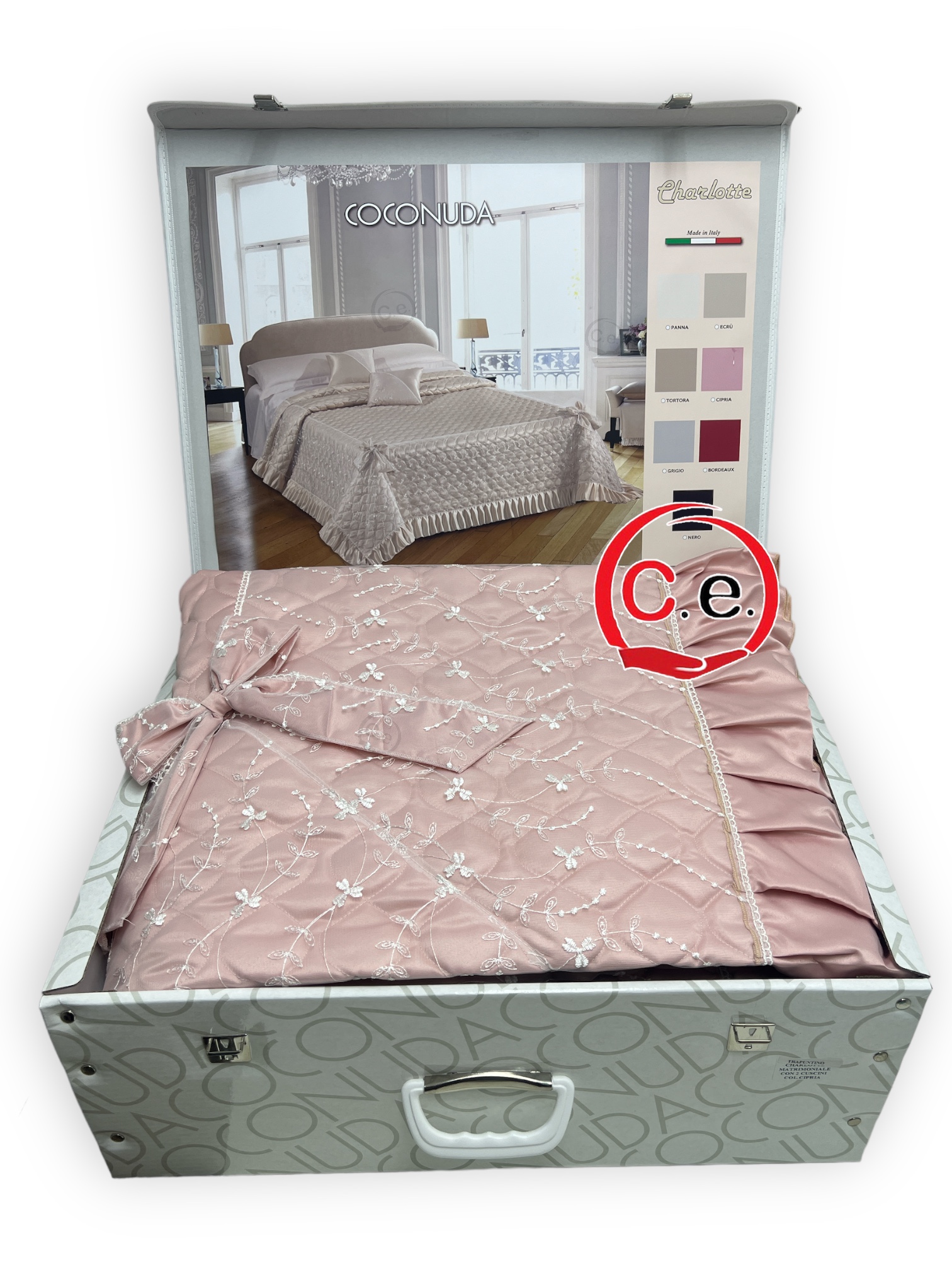 Ricamato 🧵 nei minimi particolari con 2 cuscini arredo coordinati, rouche e fiocchi 🎀