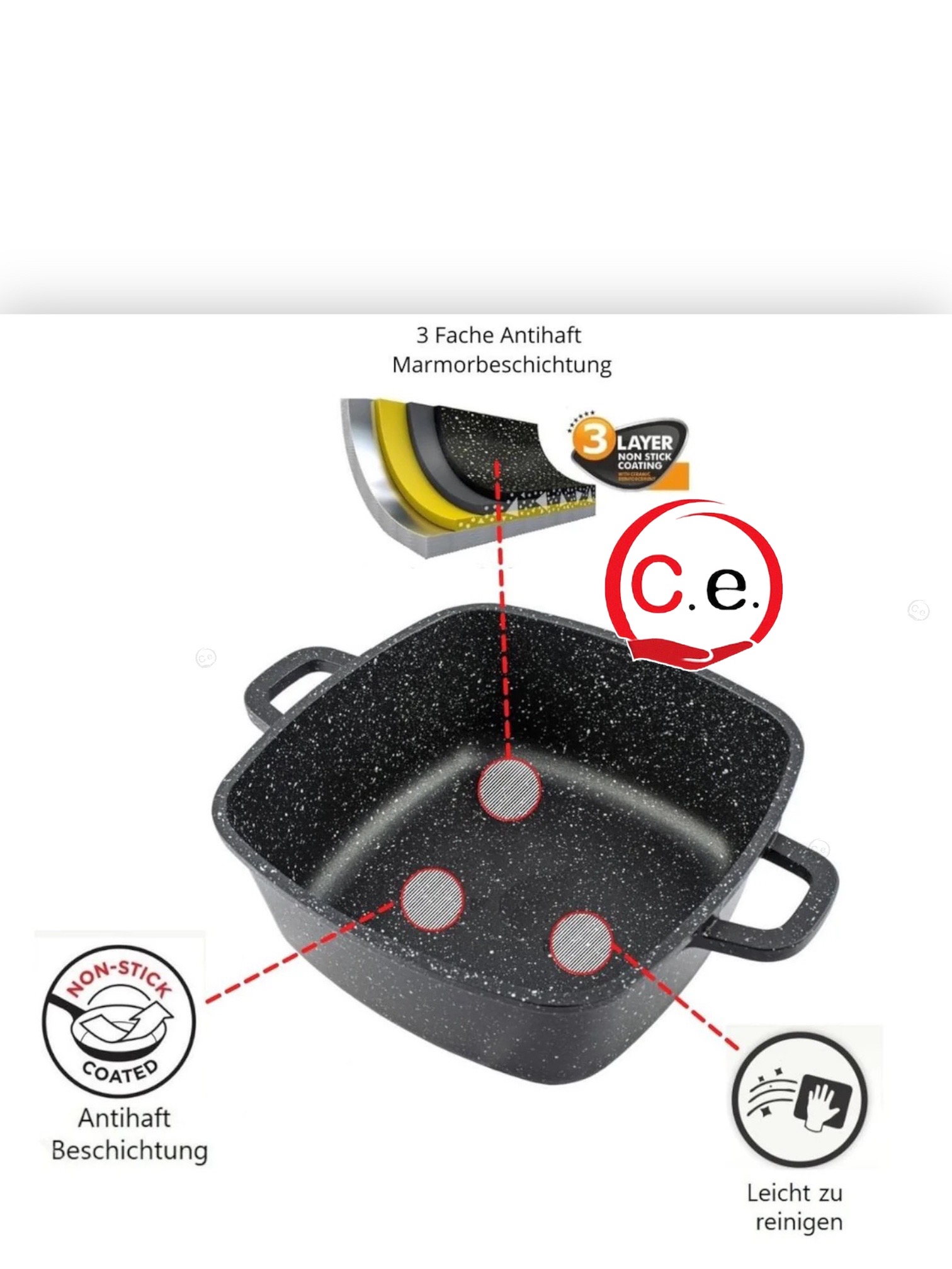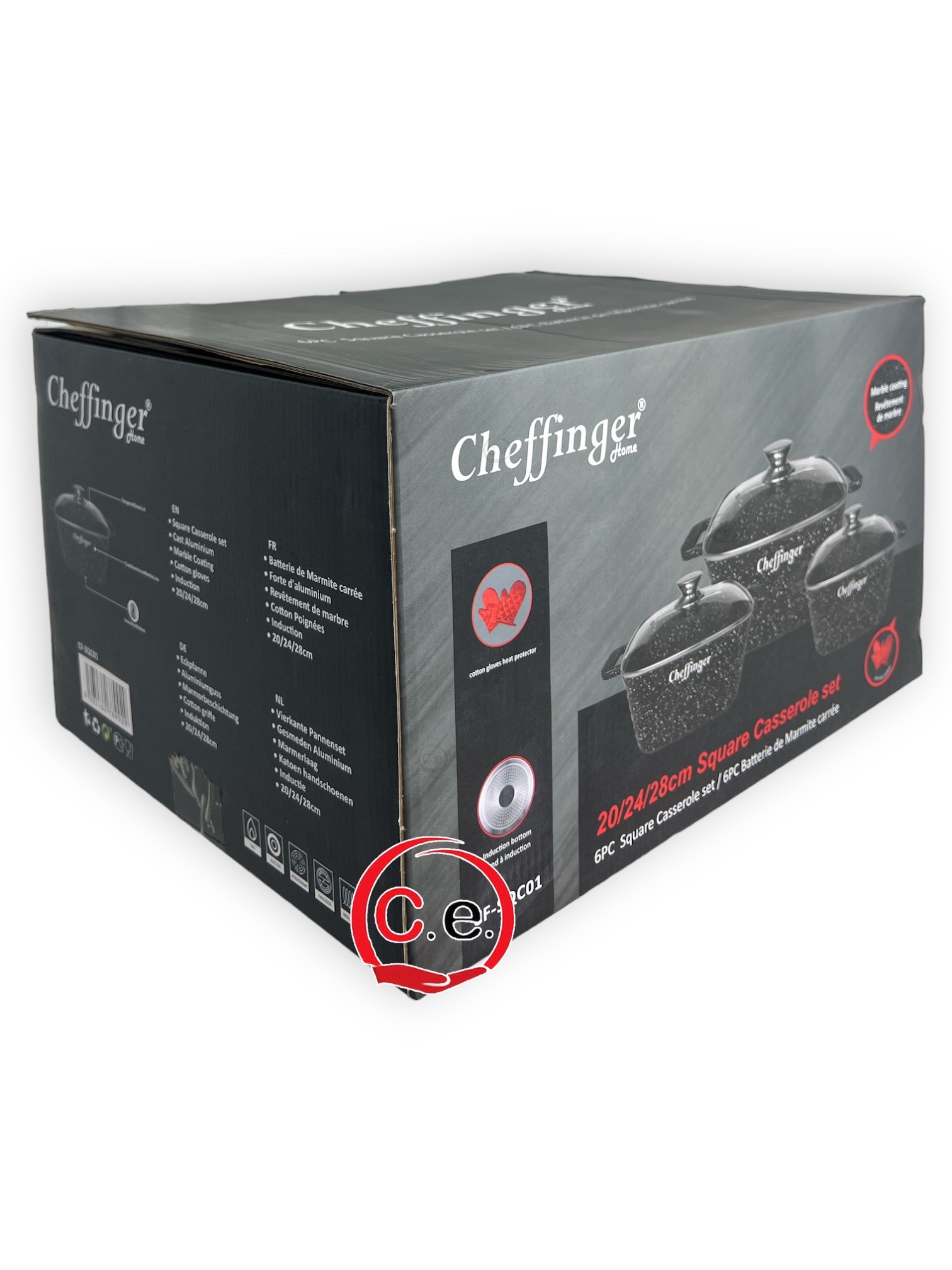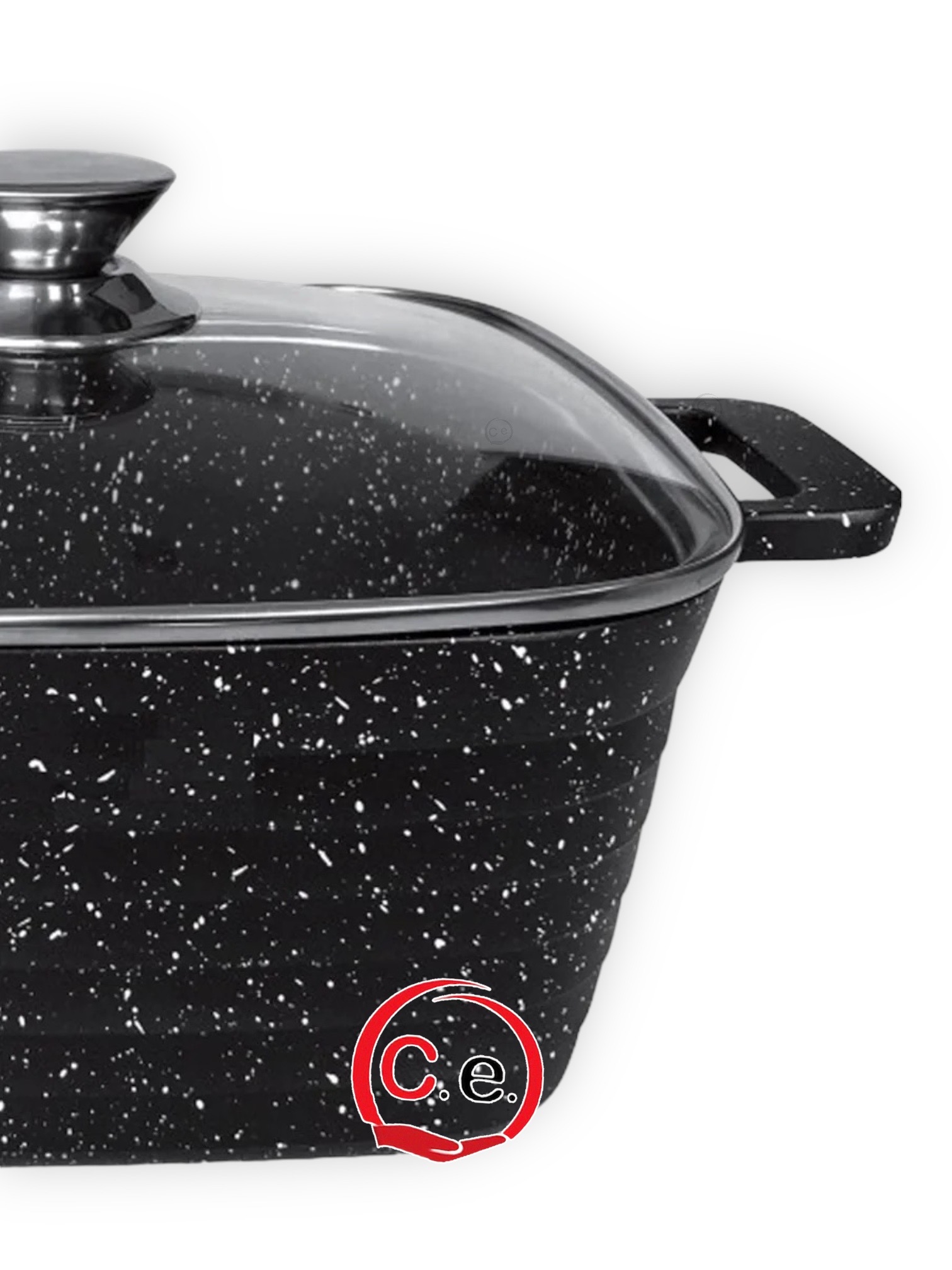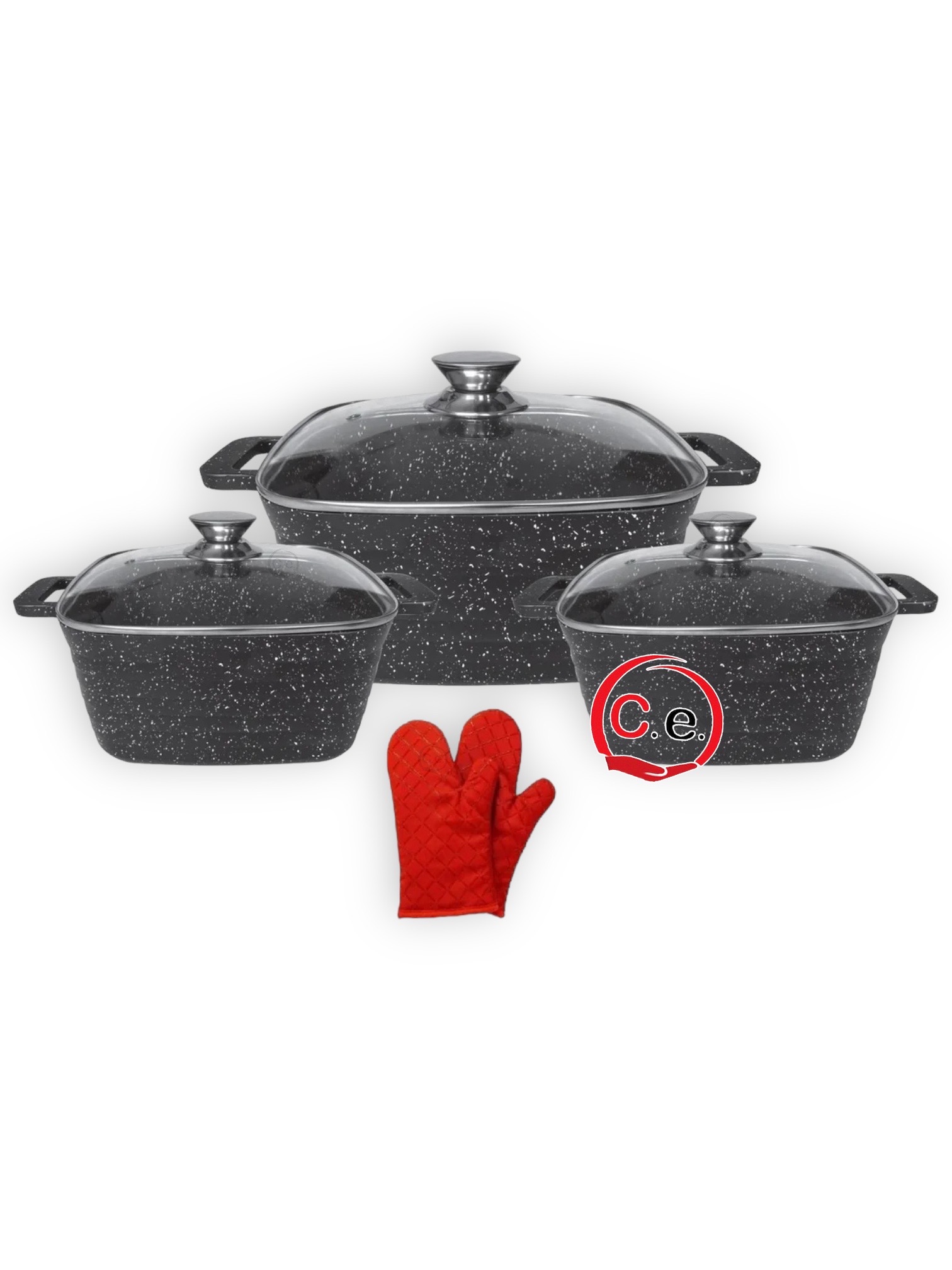 Tris casseruole quadrate in pietra lavica con coperchio in vetro Cheffinger 👩🏼‍🍳