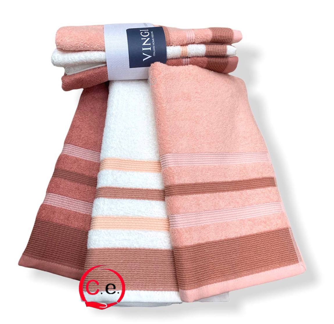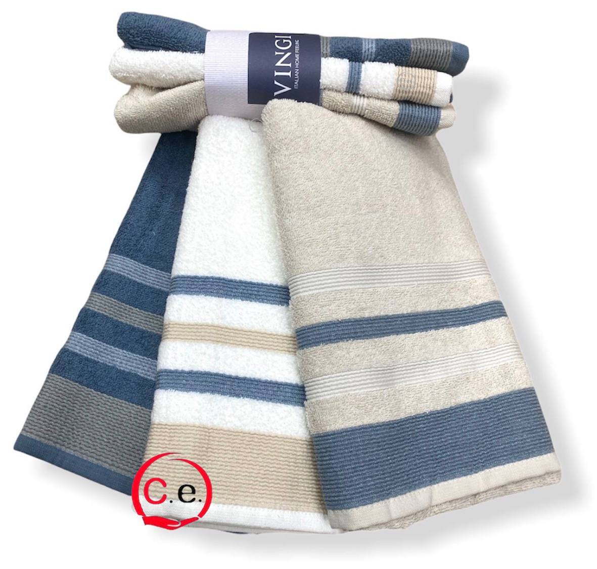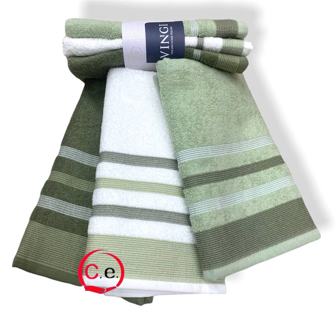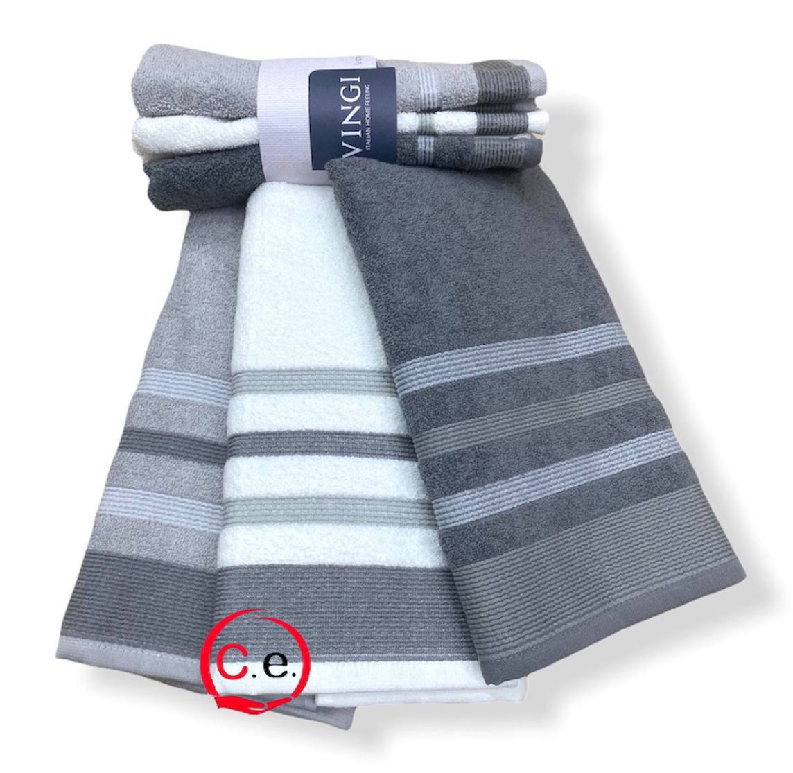 | Misura | Tris Asciugamani viso 55×100cm, Tris Asciugamani ospite 40×55cm |