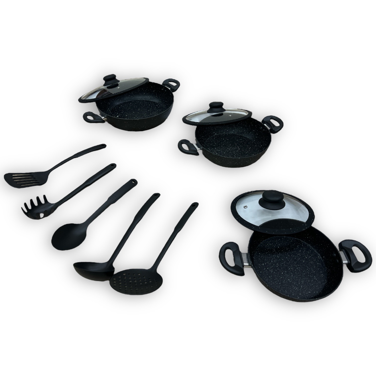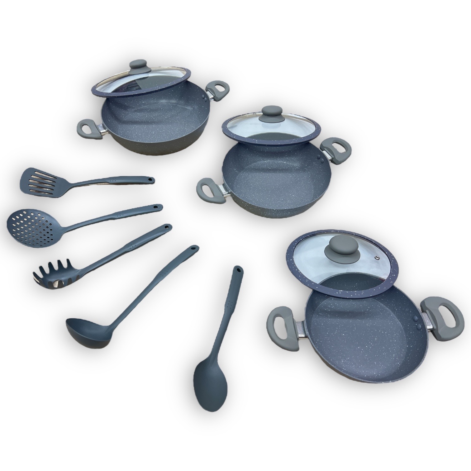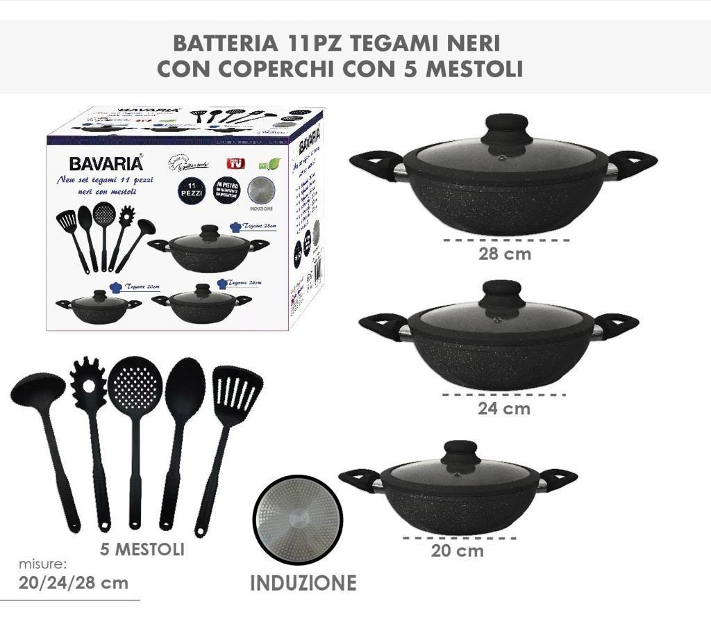 Tipo alto in pietra lavica composte da 3 padelle e 3 coperchi con manici particolari, doppie antiaderenti per una cucina sana ? con piano cottura adatto sia sulle cucine a gas che su quelle ad induzione