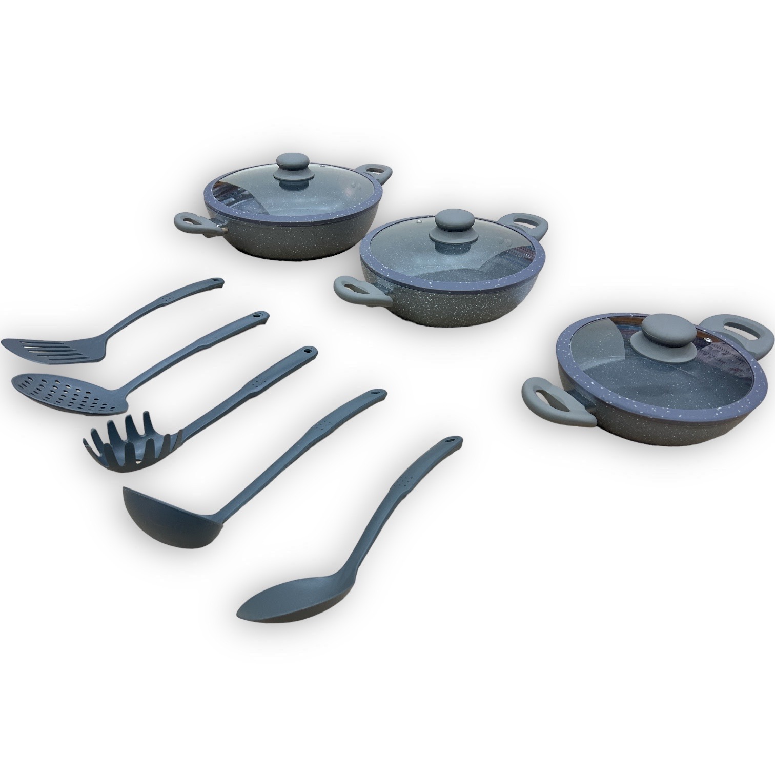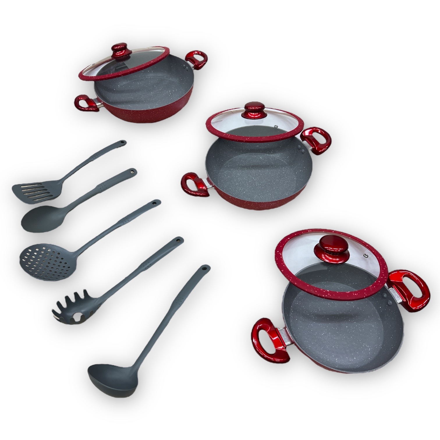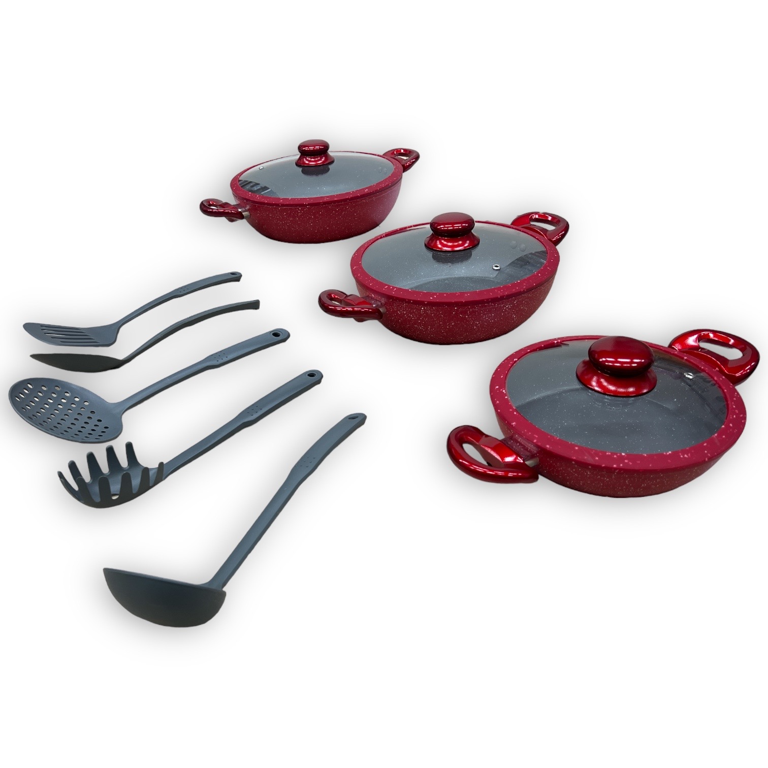 Tipo alto in pietra lavica composte da 3 padelle e 3 coperchi con manici particolari, doppie antiaderenti per una cucina sana ? con piano cottura adatto sia sulle cucine a gas che su quelle ad induzione