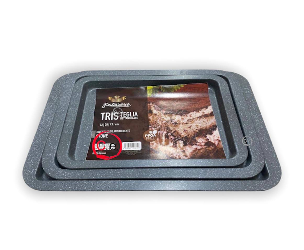 Il tris è composto da: 1 teglia 33cm 1 teglia 38cm 1 teglia 43cm